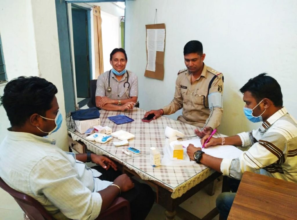 रानी दुर्गावती सामुदायिक स्वास्थ्य केन्द्र चारामा में पुलिस थाने के समस्त अधिकारी कर्मचारियो के