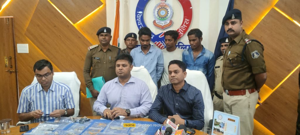 / पुलिस अधीक्षक कांकेर श्शलभ कुमार सिन्हा के निर्देशन में अति पुलिस अधीक्षक अविनाश ठाकुर एवं अनु . अधिकारी पुलिस अनुराग झा के पर्यवेक्षण में थाना कांकेर पुलिस द्वारा चोरी के मामले में 03 आरोपियों को गिरफ्तार किया है । मामले का विवरण इस प्रकार है कि प्रार्थी अरूण नेताम पिता देवाल सिंह नेताम निवासी बरदेभाटा कांकेर ने दिनांक 18.10.2022 को शाम 04.00 बजे अपने बहन के घर गया था तथा प्रार्थी की पत्नि उसी तिथि को शाम 05.00 बजे घर में ताला लगाकर अपने मयके दसपुर गयी थी दिनांक 19.10.2022 को प्रातः 09.00 प्रार्थी की पत्नि घर वापस आयी तो देखी कि घर का ताला टूटा हुआ है घर के अन्दर कमरे आलमारी को तोड़कर कोई अज्ञात व्यक्ति आलमारी में रखा दो नग सोने का हार , दो सोने का चैन , दो सोने का कगन , मंगलसूत्र , झुमका , चादी का बिछिया , पायल स्मार्ट वॉच हाथ घड़ी एवं गुल्लक में रखा हुआ 2000 रूपया जुमला रकम 451349 रूपये को कोई चोरी कर ले गया है प्रार्थी के रिपोर्ट पर अज्ञात आरोपियों के विरूद्ध अपराध क्रमांक 309/2022 धारा 457 , 380 भादवि कायम कर विवेचना में लिया गया था विवेचना के दौरान चोरी गई सम्पति एवं अज्ञात आरोपी की पतासाजी की जा रही थी प्रकरण में विवेचना के दौरान मुखबीर के माध्यम से थाना कांकेर पुलिस को सूचना प्राप्त हुई कि शिवा बाल्मिकी निवासी टिकरापारा अपने साथी मितेश चौहान के साथ अपने साथियों को बोला था कि वरदेभाठा में चोरी किया हुआ बहुत सारा रखा है उसको बेचने के फिराक में है । उक्त सूचना कि तस्दीक थाना कांकेर पुलिस द्वारा किया गया आरोपियों शिवा बाल्मिकी एवं मितेश चौहान को अभिरक्षा में लेकर पूछताछ किया गया जिसने आरोपी मितेश चौहान के साथ मिलकर चोरी की घटना करना स्वीकर किया तथा कुछ सोना को आरोपी नीरज गंजीर निवासी अलबेलापारा को बेचना बताया आरोपी शिवा बाल्मिकी एव के निशानदेही पर 01 नग सोने का मंगलसूत्र , 06 जोड़ी चांदी का पायल , 01 जोड़ी सोने के बाली 01 स्मार्ट वाचं एवं 04 नग घड़ी एवं ताला तोडने में प्रयुक्त राड को जप्त किया गया तथा आरोपी मितेश चौहान के निशानदेही पर उसके घर से 04 नग चांदी बिछिया , 01 जोड़ी सोने का झुमका , 01 नग सोने का चैन तथा 01 नग हार तथा 05 नग हाथ घड़ी को जप्त किया गया दोनो आरोपियों द्वारा चोरी किये गये जेवरात में से सोने का कंगन हार एवं चैन को 01 लाख रूपये में आरोपी नीरज गंजीर निवासी अलबेलापारा को बेचना बताया उक्त जानकारी के आधार पर आरोपी नीरज गंजीर को अभिरक्षा में लेकर पुछताछ किया गया जिसने चोरी सोने का कंगन हार एवं चैन को 01 लाख रूपये को स्वीकार किया आरोपी के द्वारा चुराई गये वस्तुओं को खरीदना तथा चोरी किये गये वस्तुओं को खपाने में सहायता करना स्वीकार करने से तथा आरोपी नीरज गंजीर के निशानदेही पर उसके घर से आरोपियों से खरीदा हुआ सोने के कंगन , सोने 