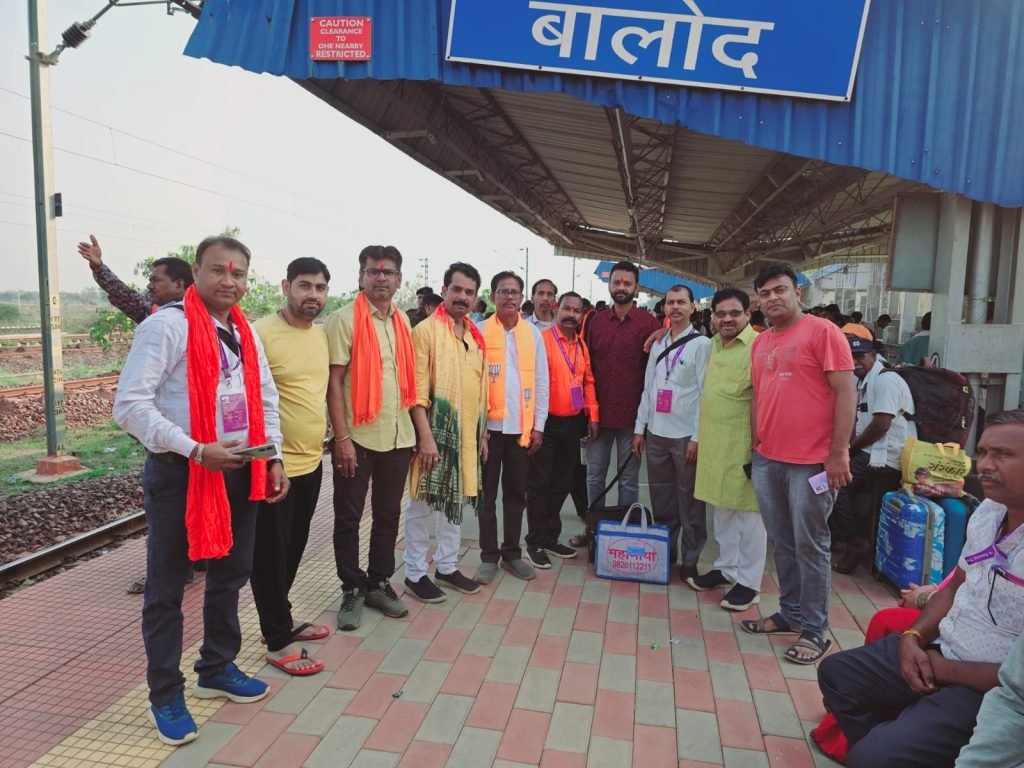 भारतीय जनता पार्टी शहर मंडल के कार्यकर्ताओं ने आज रामलला के दर्शनार्थ आयोध्या जाने वाले सभी भक्तों का स्वागत एवं ट्रेन पर फूलों की वर्षा कर सभी भक्तो को शुभकामना देते हुए जमकर जय श्री राम के जयकारा लगाते हुए उन्हें रवाना किया रामलला दर्शन यात्रा के इस अवसर पर आज भानुप्रतापपुर से यात्री ट्रेन दल्लीराजहरा एवं बालोद होते हुए दुर्ग रायपुर हेतु रवाना हुई इस अवसर पर बालोद जिले से अनेक कार्यकर्ता एवं भक्तगण रामलला के दर्शन हेतु रवाना हुए यात्रियों से भरी ट्रेन जैसे ही बालोद स्टेशन पर आई शहर मंडल के कार्यकर्ताओ ने छत्तीसगढ़ के भाँचा राम जय श्री राम जय श्री राम के गगनभेदी जयकारा से पूरे स्टेशन को भक्तिमय बना दिये हाथो में फूलों की पंखुड़िया लिए कार्यकर्ताओ ने पुष्प वर्षा कर सभी यात्रियों को सुखद मंगलमय यात्रा की शुभकामना दी इस अवसर पर शहर मंडल अध्यक्ष सुरेश निर्मलकर वरिष्ठ पार्षद कमलेश सोनी अमित चोपड़ा विनोद जैन दीपक देवांगन महेश पाठक लेखन बसन्ती साहिरो तुलेश साहू रामदयाल नेताम सुरेंद्र सारथी सुनील यादव जागेश सोनी सहित अनेक लोग उपस्थित थे