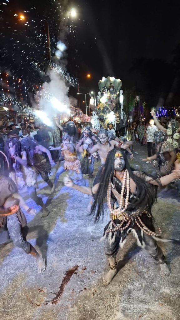 फरसगांव – महाशिवरात्रि पर्व के अवसर पर दो पूर्वं फरसगांव नगर में शिवभक्त व नगरवाशियो के द्वारा अघोरी बाबा का रोड शो और झांकी का आयोजन आज 06 मार्च बुधवार किया गया । जिसे देखने नगर सहित आस पास गांव के ग्रामीण बड़ी संख्या में पहुचे हुए थे । उत्तरप्रदेश के बनारस से आये हुए अघोरी बाबा व सदस्यों के द्वारा कार्यक्रम का प्रदर्शन किया ।
