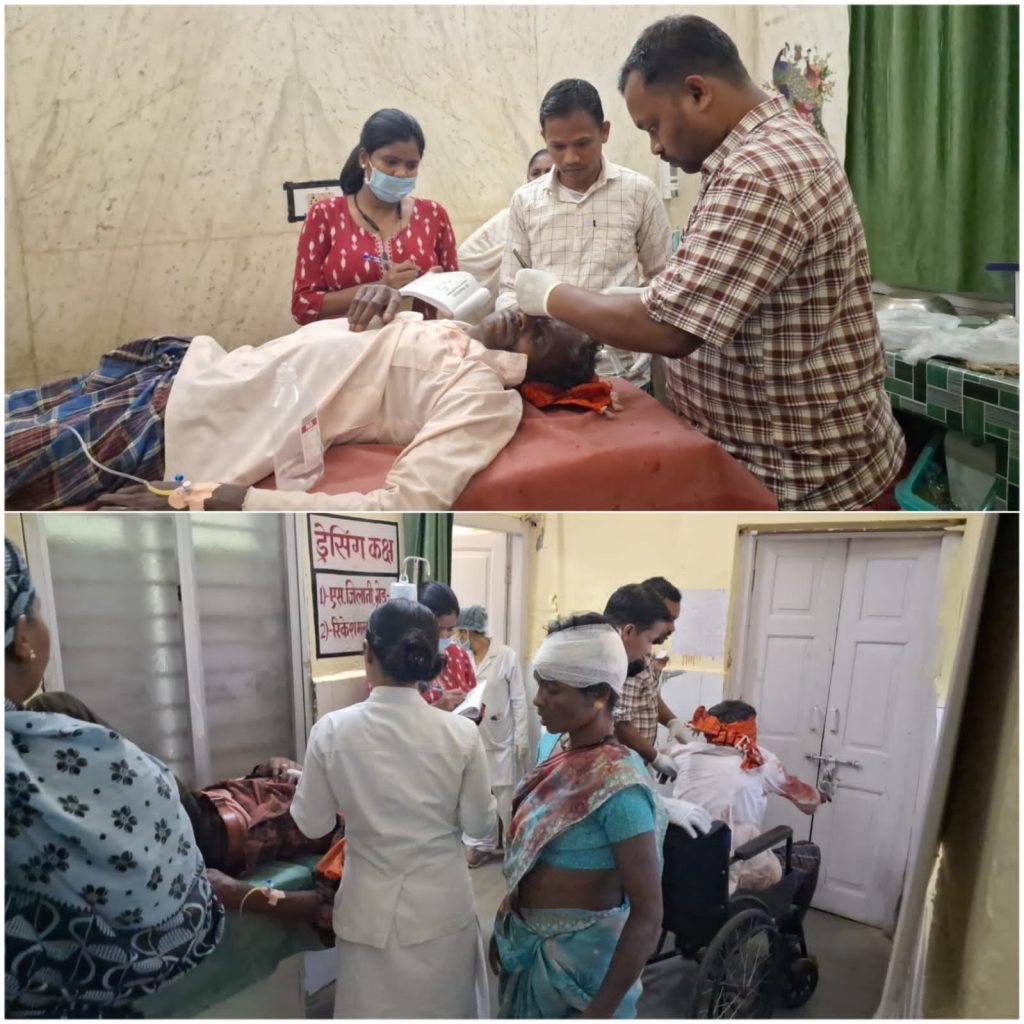 जानकारी अनुसार ग्राम बालोंड कलिपारा निवासी देवलाल मरकाम अपनी पत्नी सनिता, बेटी दुर्गावती , रेखा और छोटा बेटा अंकुश के साथ बाइक में सवार होकर बेडमा से वापस घर आ रहा था, तभी नेशनल हाइवे 30 गुरुद्वारा के पास दूसरे बाइक में सवार ग्राम देवगांव निवासी बालसाय कुंजाम और बनियागांव निवासी रामलाल कोर्राम से टकरा गए। इस हादसे में देवलाल , सनिता, रेखा , बालसाय और रामलाल घायल हो गए , जिन्हें तत्काल 108 एम्बुलेश की सहायता से उपचार हेतु सामुदायिक स्वास्थ्य केंद्र फरसगांव में लाया गया। बालसाय और देवलाल के सर में ग्गम्भीर चोट आई हैं। सभी का उपचार चल रहा है ।