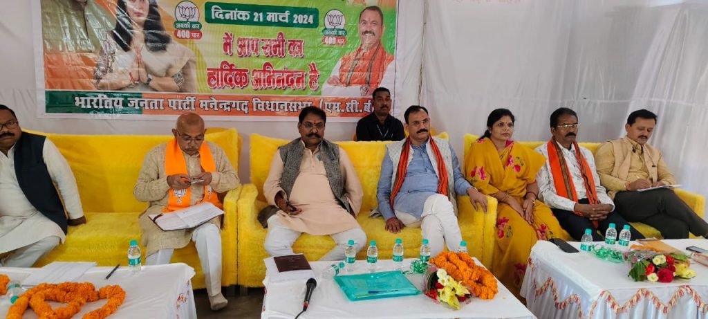छत्तीसगढ़ सरकार के स्वास्थ्य मंत्री व मनेन्द्रगढ़ के विधायक श्याम बिहारी जायसवाल ने मोदी कि गारंटी पर कहा कि एक तरफ पूरे देश मे मोदी कि गारंटी चल रही जिसके तहत किसानो को बोनस का भुगतान, छत्तीसगढ़ कि 70 लाख माताओ बहनो को साल के 12000 रुपए देने की योजना के तहत महिलाओ व बहनो को छत्तीसगढ़ कि सरकार आत्मनिर्भर बनाने का कार्य कर रही है वंही आज प्रदेश के विष्णु देव जी के सरकार के 100 दिन पूरे होने पर प्रदेश मे विकास कि बयार बह रही है जिसे पूर्व कि कांग्रेस कि सरकार के द्वारा अवरुद्ध कर दिया गया था अब हम प्रदेश सरकार के नेतृत्व मे अच्छा कार्य कर रहे है जो आप भलीभांति महसूस कर सकते है जंहा क्षेत्र मे वर्षो से पड़े रेल लाइन के प्रोजेक्ट को पूर्ववर्ती कांग्रेस की सरकार ने रोक के रखा था जिसे प्रदेश की सरकार के द्वारा किया जा रहा साथ ही कांग्रेस की सरकार ने गरीबो के सर से छत छीनने जैसा घिनौना कार्य किया था जो छत्तीसगढ़ कि प्रदेश कि सरकार बनते ही शपथ ग्रहण के बाद प्रथम कार्य प्रधानमंत्री आवास कि स्वीकृति जैसे जनहित मे निर्णय ले गरीब भाइयो के हित मे सर पर छत ढकने का पुण्य कार्य किया तथा देश मे राम मंदिर को लेकर जो फैसला लिया जो आज देश के लिए हम आप सब साक्षी है वंही प्रदेश की सरकार के द्वारा आम जनो के लिए अयोध्या धाम जैसा तीर्थ मे भेजने के लिए कृत संकल्पित है जिन उदेश्यों को लेकर आप सभी ने भारतीय जनता पार्टी की सरकार बनाने के लिए बूथ स्तर तक सहयोग किया उसके लिए आप सभी को धन्यबाद एवं कोटी कोटी बधाई के साथ आप सभी पुनः केंद्र मे मोदी कि गारंटी को गति देने के लिए छत्तीसगढ़ की बेटी जिन्हे छत्तीसगढ़ की जनता महापौर,राज्य सभा सांसद, विधायक जैसे पदो को सुशोभित कर चुकी कोरबा लोक सभा के प्रत्यासी सुश्री सरोज दीदी को अधिक मतो से विजयी बनाने का आह्वान किया गया ।आज के विधान सभा प्रबंधन, एवं कोर कमेटी के साथ भाजपा जिला के पदाधिकारीगण, मोर्चा , प्रकोष्ठ के जिलाध्यक्ष,एवं संयोजक, सह संयोजक सहित चिरमिरी, मनेन्द्रगढ़, खड़गनवा,हसदैव के मंडल अध्यक्ष, महामंत्री, जिला संयोजक , शक्ति केंद्र प्रभारी शोशल मीडिया, आई टी सेल तथा मीडिया प्रभारी संजय गुप्ता,उग्रसेन पाल सहित अन्य लोग उपस्थित थे। आज के कार्यक्रम का संचालन एवं आभार जिला महामंत्री वीरेंद्र सिंग राणा द्वारा किया गया।