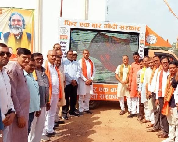 कांकेर लोकसभा क्षेत्र में भारतीय जनता पार्टी का चुनाव प्रचार अभियान और बैठकों का दौर प्रारम्भ हो गया है जहां एक ओर प्रत्याशी भोजराज नाग सभी मंडलो में जाकर एक एक बार कार्यकर्ताओ से मिलकर एवं वरिष्ठों से चुनाव में जीत का आशीर्वाद मांग रहे हैं वही दूसरी तरफ कांग्रेस के अब तक प्रत्याशी तय नही हो पाने की वजह से कांग्रेस काफी पीछे नजर आ रही है इसी तारतम्य में आज जिला भाजपा कार्यालय में भाजपा जिला अध्यक्ष पवन साहू ने एलईडी स्क्रीन प्रचार वाहन को क्षेत्र में केंद्र सरकार की योजनाओं को लाभार्थियों तक पहुंचाने एवं मोदी सरकार के सफलतम 10 वर्ष के कार्यकाल को जनता तक ले जाने प्रचार वाहन को रवाना किया है जो शहर एवं ग्रामीण तथा सुदूर अंचलों जाकर लोगो मे मोदी सरकार की उपलब्धि को दिखाएगी