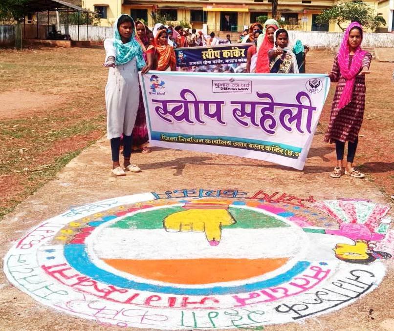 कलेक्टर एवं जिला निर्वाचन अधिकारी श्री अभिजीत सिंह के निर्देश पर और स्वीप के नोडल अधिकारी श्री सुमित अग्रवाल के मार्गदर्शन में जिले में मतदाता जागरूकता कार्यक्रम के तहत विभिन्न गतिविधियों के माध्यम से नागरिकों को मतदान के लिए जागरूक किया जा रहा है। इसी क्रम में आज कांकेर एवं दुगूकोंदल विकासखण्ड के गांवों में आंगनबाड़ी कार्यकर्ता, सहायिका, मितानिन और स्वसहायता समूह की महिलाएं ‘स्वीप सहेली’ के रूप में गांव-गांव में रैली एवं रंगोली के माध्यम से मतदाताओं को जागरूक कर रही हैं। साथ ही ’चलो मतदान केन्द्र की ओर’ का नारा लगाते हुए सभी मतदाताओं को मतदान के दिन मतदान केंद्र में जाकर अनिवार्य रूप से वोट करने हेतु प्रेरित भी किया जा रहा है।