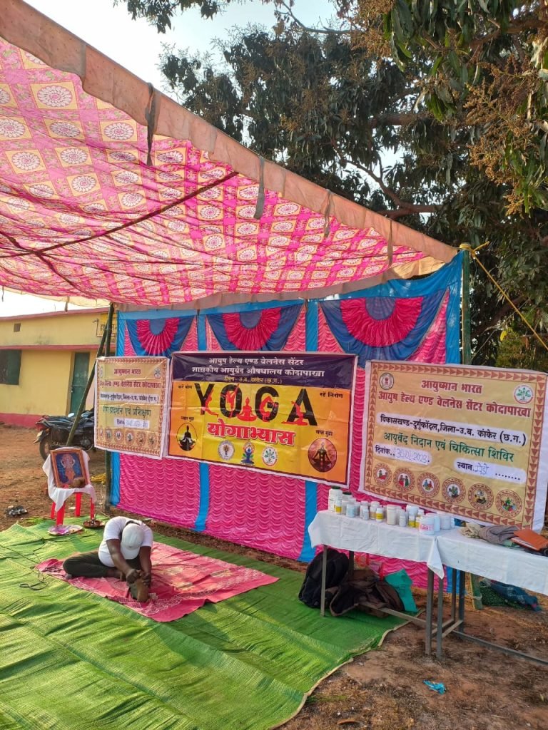 आयुष हेल्थ एंड वेलनेस सेंटर कोदापाखा द्वारा आयोजित ग्राम मेड़ों में पांच दिवसीय योग प्रशिक्षण शिविर का शुभारंभ,आज ग्राम गायता रामदुलार देहारी, के द्वारा भगवान धन्वंतरी के पूजा अर्चना के साथ हुआ। योग शिक्षक शिवप्रसाद बघेल द्वारा योगाभ्यासियो को योग के विभिन्न आसान यौगिक जांगिग, पवन मुक्तासन, वज्रासन प्राणायाम भ्रामरी, ध्यान, कपालभाति ,अनुलोम विलोम , शसकासन, मंडूकासन,शांतिपाठ, आदि का अभ्यास कराते हुए, योग के महत्व को बतलाया गया, योग के विविध अभ्यास से शारीरिक गठन एवं मांसपेशियों की सुदढ़ता एवं मानसिक स्वास्थ्य मे विशेष योगदान मिलता है। इसके अतिरिक्त अनेक मानसिक और शारीरिक रोगों को दूर करने की क्षमता तथा स्मरण शक्ति, एकाग्रता को। बढ़ाने एवं तनाव दबाव चिंताओ से मुक्त होने मे सहायक है। योग शिविर में रोग प्रतिरोधक क्षमता बढ़ाने के लिए आयुष काढ़ा का वितरण कर रोग निदान एवं आयुर्वेदिक चिकित्सा शिविर आयोजन कर मरीजों को जांच उपरान्त आयुर्वेदिक औषधियों का वितरण किया गया। योग शिविर में सरपंच अनुज खरे एवं ग्राम पटेल मेहरसिंह कोमरा का सक्रिय सहयोग प्राप्त हो रहा हैं। औषधालय के कर्मचारी सीमा जुर्री, जगदीश मरकाम ने अपनी सेवाएं दी। योग शिविर प्रभारी ने सभी छात्र छात्राओं एवं ग्रामीण जनों से आग्रह किया कि शिविर में आकर स्वास्थ्य लाभ ले, इस अवसर पर जागेश्वर जैन, सत्तुराम कोमरा, गोकुल सिन्हा, कोटवार रामचरण कोमरा, हीरालाल ताराम, आदि ग्रामीण जन उपस्थित थे।