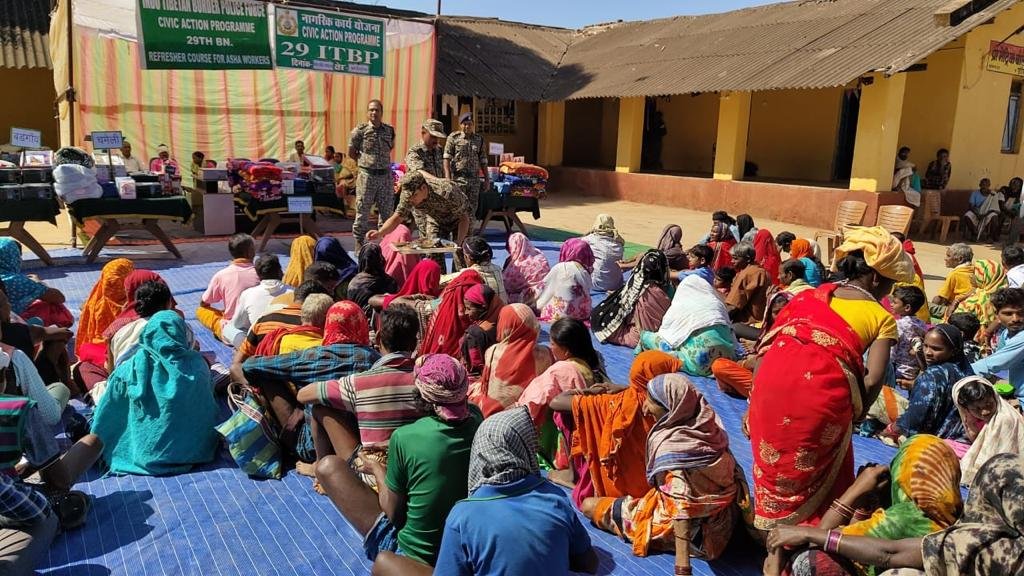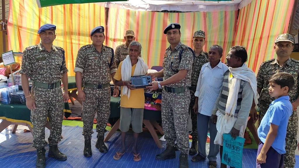कोण्डागांव :- नक्सल प्रभावित जिला-कोण्डागांव एवं नारायणपुर में भारत तिब्बत सीमा पुलिस बल के जवानों द्वारा नक्सल उन्मूलन अभियान के साथ-साथ अंचल के, जरूरतमंद लोगों की मदद तथा हरसंभव सहायता भी करते रहे हैं। इसी क्रम में समर बहादुर सिंह, सेनानी 29वीं वाहिनी, के मागर् दषर्न में नीरज सिंह उप.सेनानी एवं अनिल चैहन सहायक सेनानी द्वारा ’’एफ’’ समवाय 29वीं वाहिनी छोटेड़ोगर में आज 03 फरवरी को सिविक एक्षन कायर्क्रम का आयोजन किया गया। इस कायर्क्रम के दौरान ग्रामीणों को रेडियो सेट, साड़ी, कम्बल, टी-शर्ट आदि तथा स्कूली बच्चों को लेखन सामग्री का वितरण किया गया जिसमें छोटेड़ोगर, बड़गाॅव, चमेली, महोरनार एवं बांहकेर के लगभग 750 ग्रामीणों तथा छात्रों को लाभान्वित किया गया।
