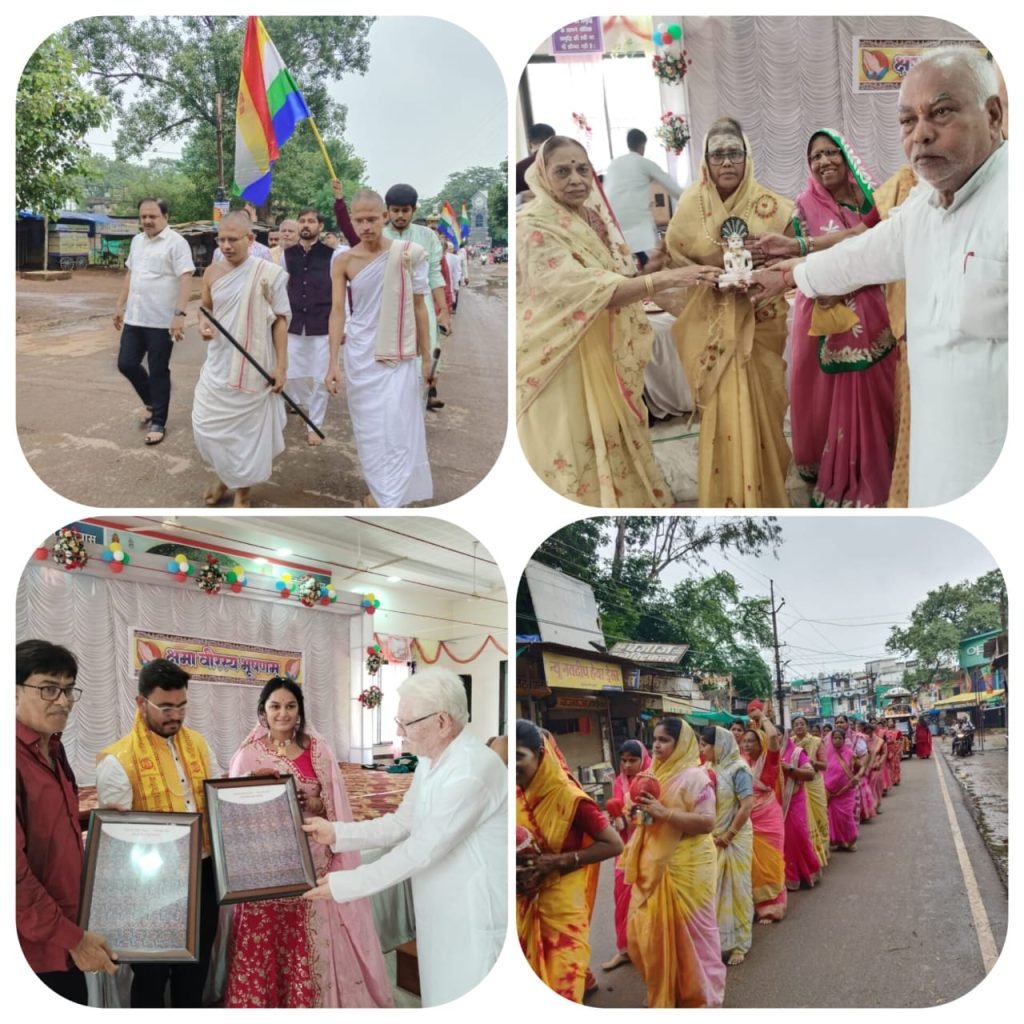 बालोद- पर्युषण पर्व के 8 दिन तक तप आराधना करने के बाद समस्त जीवों से क्षमा याचना की गई ।आत्मा के शुद्धि के लिए संत ऋषभ सागरजी एवम ऋजु प्रज्ञसागरजी म सा के सानिध्य में बड़े ही उत्साह पूर्ण माहौल में पर्युषण पर्व की आराधना की गई।इसी कड़ी में समस्त तपस्वियों का सम्मान एवम बहुमान करने के लिए आज बरघोडा जुलुस निकाला गया।। महावीर भवन से बाजे-गाजे के साथ बरघोड़ा(सम्मान में जुलूस) निकाला गया जो नगर के प्रमुख मार्गों से होते हुए पुनः महावीर भवन पहुंचा।महावीर भवन में भगवान पार्श्वनाथ की प्रतिमा की महा आरती बाबूलाल ढेलडिय़ा परिवार द्वारा की गई।महावीर भवन में समस्त तपस्वियों का बहुमान संभवनाथ जैन मंदिर समिति एवम चातुर्मास समिति द्वारा की गई।इस अवसर पर श्रीसंघ अध्यक्ष डॉ प्रदीप जैन ने कहा की यह पर्व आत्मावलोकन का पर्व है जिसमे आत्मशुद्धि को बहुत महत्व दिया गया है।इस पर्व में जिन लोगो ने तप आराधना के माध्यम से अपने अंदर के कषायों को दूर करने का कार्य किया है उनका जैनश्री संघ एवम सहजानंदी चातुर्मास समिति द्वारा बहुमान किया गया । श्री संभवनाथ जैन मंदिर समिति के अध्यक्ष बाबूलाल ढेलडिय़ा एवम सचिव रूपचंद गोलछा ने कहा कि संत ऋषभ सागरजी एवम ऋजु प्रज्ञ सागरजी के सानिध्य में चातुर्मास का यह समय स्वर्णिम एवम ऐतिहासिक रहा,लोगों में धर्म की जागृति बढ़ी।चातुर्मास समिति के अध्यक्ष मुकेश भंसाली ने चातुर्मास के 50 दिन जिसमे पर्व पर्युषण भी सम्पन्न हुआ के विविध आयोजनों में सहभागिता देने वाले सभी सदस्यों के प्रति कृतज्ञता व्यक्त की एवम तपस्वियों के प्रति अनुमोदना व्यक्त की।। इस अवसर पर जिन तपस्वियों का सम्मान किया गया वे हैं- श्रीमति कंचन श्रीश्रीमाल, श्रेयांश श्रीश्रीमाल, मौलिक नाहटा दुर्ग, स्तुति भंसाली, समृद्धि डुंगरवाल, मोनिका जैन,वीर माता कमला बाई तातेड़,ओजस सांखला,सोनल गोलछा, विनीत चौरड़िया, सौरभ चोपड़ा,सोनम चोपड़ा,बबली चोपड़ा, श्रीमती अंजू बाफना, श्रीमति सरिता ढेलडिय़ा, मौली डुंगरवाल, सरिता गोलछा,राजीब जैन,बाबूलाल बडेर, नैतिक गोलछा, मोनू ढ़ेलडिया,।। इसके अतिरिक्त अक्षयनिधि तप समोशरण तप, विजय कषाय तप एवम अष्ट महासिद्धि तप करने वालों में – दिव्या बाफना,शीतल श्रीश्रीमाल, निकिता श्रीश्रीमाल, नेहा श्रीश्रीमाल, वर्षा चौरड़िया,उषा बोहरा, दिशा संचेती दुर्ग,श्रीमति गिफ्टी भंसाली,तृप्ति सांखला,सुनीता गोलछा,सेजल गोलछा, राखी पारख,मौली डुंगरवाल, डाली डुंगरवाल, राहुल गोलछा, गौरव गोलछा, श्रीमति ज्योति संखलेचा, लीला शर्मा,आँचल ओस्तवाल कुरूद,रेखा भन्साली, लक्ष्मी बरडिया,गुंजन भन्साली, रंजना भंसाली, शारदा गोलछा,शुभम नाहटा,नीलम संकलेचा,कोमल जैन।। परमपूज्य ऋषभ सागरजी म सा का आज जन्म दिवस था इस
