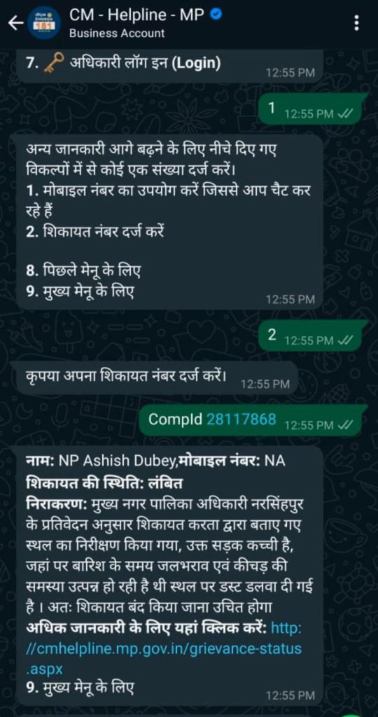 12 अगस्त को सीएम हेल्पलाइन पर नरसिहपुर के युवा आशीष कुमार दुबे ने शिकायत की सांकल रोड स्थित मुशरान वार्ड पटेल कालोनी गली नं दो में कच्ची सड़क है वार्ड बासियों कई सालों से सीसी सड़क की मांग कर रहे थे । इस मामले को संज्ञान लेकर पंचायत मंत्री प्रहलाद सिंह पटेल ने सीसी सड़क की मंजूरी दी व भूमिपूजन भी कर दिया पर नगर पालिका एवं ठेकेदार द्वारा इस पर ध्यान नहीं दिया गया वहीं वार्ड बासियों द्वारा 9 माह बीत जाने के बाद जब ठेकेदार एवं नगर पालिका नरसिहपुर को आवेदन दिया कि सड़क निर्माण जल्द से जल्द प्रारंभ करने की मांग की तो अधिकारियों द्वारा कोई जबाव नहीं दिया । वहीं दुबे द्वारा 12 अगस्त सीएम हेल्पलाइन की तो 2 माह बीत जाने के बाद भी निराकरण नहीं हुआ वहीं नगर पालिका नरसिहपुर के अधिकारियों द्वारा सीएम हेल्पलाइन की शिकायत को प्रतिवेदन अनुसार शिकायत करता द्वारा बताए गए स्थल का निरीक्षण किया गया, उक्त सड़क कच्ची है, जहां पर बारिश के समय जलभराव एवं कीचड़ की समस्या उत्पन्न हो रही है थी स्थल पर डस्ट डलवा दी गई है । जब मौके पर पत्रकार पहुंचे तो न वह मुराम थी न सड़क वहीं अधिकारियों से जब इस मामले में बात की तो संतुष्ट जबाव नहीं मिला। अभी भी सीएम हेल्पलाइन की शिकायतें लंबित पड़ी हुई है। कई आवेदकों को तो शिकायत किए हुए कई माह गुजर गए हैं। बावजूद उनका समाधान नहीं हुआ है, जबकि सात दिन में इन शिकायतों का निराकरण हो जाना चाहिए। इन विभागों की छोटी छोटी समस्याओं की शिकायतें एल-फोर लेवल पर पहुंच गई है। लेकिन जिम्मेदार अधिकारी आवेदकों की समस्याओं का निराकरण नहीं किया जा रहा है। जिला अधिकारियों की अनदेखी की वजह से लोगों का इस योजना से भरोसा उठने लगा है।