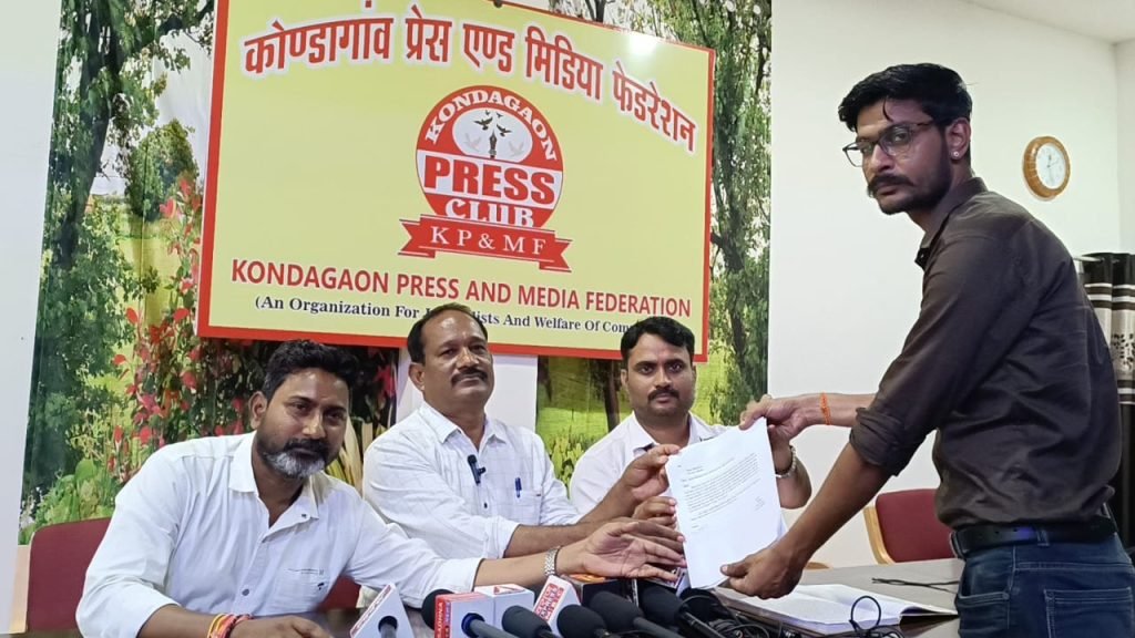 कोण्डागांव –कोंडागाँव प्रेस क्लब में कोंडागाँव भाजपा जिलाध्यक्ष दीपेश अरोरा द्वारा पत्रकार को दी गई धमकी की शिकायत पर निंदा प्रस्ताव पारित किया गया है। जिसके बाद पत्रकारों ने उक्त मामले को लेकर कलेक्टर कोण्डागांव के माध्यम से महामहिम राज्यपाल, मुख्यमंत्री, भाजपा प्रदेश अध्यक्ष के साथ ही स्थानीय विधायक के नाम आवेदन सौपा है, आपको बता दें की कोकोडी के ग्राम किवई बालेंगा में निर्मित 7 वर्षो से अधूरे बालक छात्रावास की खबर प्रकाशित होने के बाद । इस खबर पर कोंडागाँव भाजपा जिलाध्यक्ष दीपेश अरोरा ने फोन पर गंदी गंदी गाली देते हुए जान से मारने की धमकी दी, एवं अपशब्दों का प्रयोग किया। जिसकी शिकायत लिखित तौर पर उक्त मीडियाकर्मी ने कोंडागाँव प्रेस एंड मिडिया फेडरेशन सह प्रेस क्लब में की थी, जिसके बाद सर्व सम्मति से इस कृत्य की निंदा करते हुए निंदा प्रस्ताव प्रेस क्लब ने पारित किया। एवं उक्त मामले पर ज्ञापन सौपा गया, भाजपा जिला अध्यक्ष के उक्त कृत से पत्रकारों में रोष है।