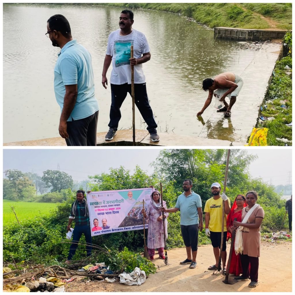 केशकाल:- समूचे देश भर में इन दिनों स्वच्छता पखवाड़ा के तहत सफाई अभियान चलाया जा रहा है। इसी क्रम में सोमवार को केशकाल नगर पंचायत अध्यक्ष रोशन जमीर खान, उपाध्यक्ष बिहारीलाल शोरी, पार्षद अनिल उसेंडी, गीता ध्रुव, शशिकला ठाकुर, सीएमओ हंसा ठाकुर एवं उप अभियंता हेमराज करभाल, योगेंद्र वर्मा समेत नगर पंचायत के कर्मचारियों ने सुरडोंगर स्टेडियम के पीछे स्थित राजा तालाब में श्रमदान कर सफाई अभियान चलाया। साथ ही नगरवासियों को अपने घर व मोहल्ले में साफ सफाई रखने एवं अन्य लोगों को भी स्वच्छता के प्रति जागरूक करने की अपील की है।