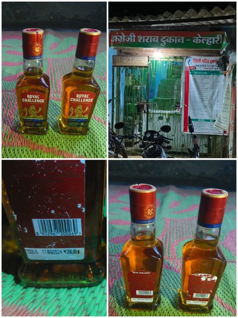 खबरों का तांडव, हरिओम पाण्डेय एमसीबी। जिले में वर्तमान समय में शराब भले ही हर वर्ग की चाहत में कही न कही कुछ प्रवेश कर रही हो लेकिन इसके गंभीर परिणाम आने वाले समय में देखने को मिल सकते है। आज समाज में मिलावटी व जहरीली शराब कही न कही मोटा मुनाफा कमाने का एक जरिया मात्र बनी है। इसके परिणाम अक्सर भयावह देखने को मिलते है। यह मिलावटी शराब शरीर को धीरे-धीरे नुकसान पहुचाकर एक दिन दीमक की तरह पूर्ण रुप से समाप्त कर देती है। पूरा मामला एमसीबी जिले के अंतर्गत ग्राम पंचायत केल्हारी का है। जहां संचालित विदेशी मदिरा दुकान इन दिनों मिलावटी शराब के नाम से जाना जाने लगा है। यहां की शराब में मिलावट का खेल लंबे समय से चल रहा है लेकिन जिम्मेदार अधिकारी मौन हैं। शराब में मिलावट की शिकायत के बाद भी उनकी नींद नहीं खुलती है। बीते दिन एक शराब प्रेमी ने अंग्रेजी शराब दुकान केल्हारी से दो नग पौवा आरसी कंपनी की खरीदी लेकिन उस बोतल पर स्कैनर नहीं लगा हुआ था और पुरानी बोतल में दाग एवं डैमेज बोतल थी। शराब प्रेमी ने इस पूरी बात को हमें बताई। इस पर हमने सेल्समैन से पूछा कि बिना स्कैनर और पुराने बोतल में शराब कैसे बेच रहे हों। तब सेल्समैन ने कहा उसको भेज दीजिए बदल कर दूसरी वाली दे देता हूं। सूत्र बताते हैं कि पुराने खाली बोतलों को केल्हारी शराब दुकान के सेल्समैन द्वारा शराब प्रेमियों के घर से इकठ्ठा करके लें जाता है। इससे साफ जाहिर है अंग्रेजी शराब दुकान केल्हारी में पुरानी खाली बोतल में मिलावटी शराब भरकर बेची जा रही है।