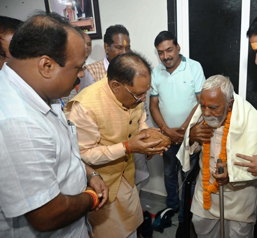 मुख्यमंत्री विष्णुदेव साय अपने बचपन के स्कूली शिक्षक राजेश्वर पाठक से मुलाकात कर भाव विभोर हो गए। उन्होंने अपने स्कूल के दिनों को याद किया और अपने शिक्षक का चरण स्पर्श कर अभिवादन किया। मुख्यमंत्री ने उन्हें शाल एवं श्रीफल भेंट कर सम्मानित भी किया। मुख्यमंत्री ने कहा कि गुरूजनों का ही आशीर्वाद है कि मैं यहां तक पहुंच पाया हूँ ऐसा कहते हुए उन्होंने अपने शिक्षक से फिर से आशीर्वाद मांगा और उनके शिक्षक ने भी पूरे दिल से आशीर्वाद दिया।