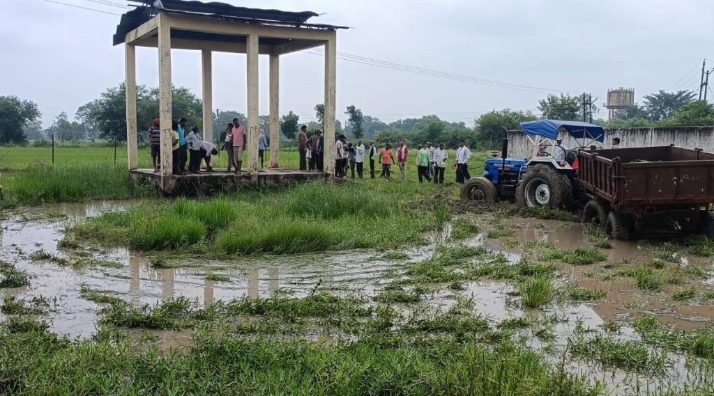 बालोद । जिला मुख्यालय से 3 किलोमीटर दूर ग्राम मेड़की की मुक्ति धाम बरसात में खेत में रोपा लगाने लायक तस्वीर सामने आई है,