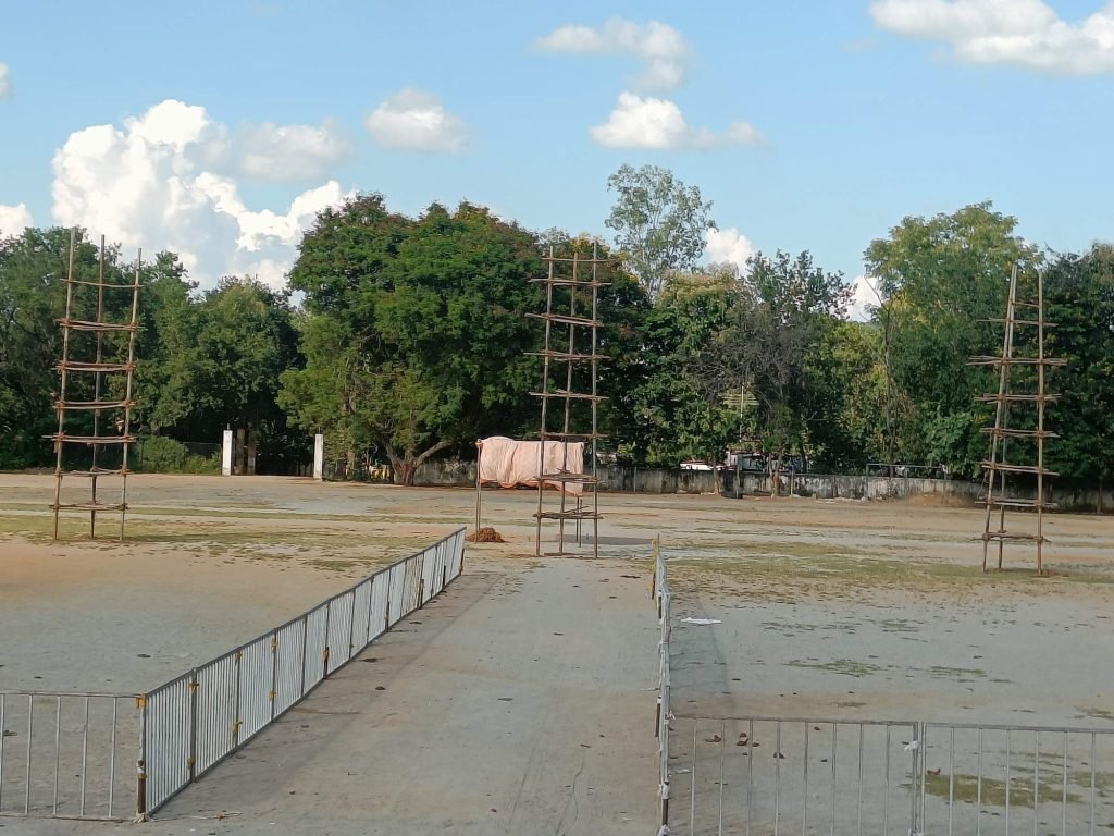 कांकेर। शहर के नरहरदेव मैदान में 12 अक्टुबर को दशहरा के दिन रावण दहन होगा। इस अवसर पर भव्य आतिशबाजी का भी आयोजन होगा। रावण दहन से पहले राम रावण युद्ध प्रसंग का मंचन भी होगा। आयोजन की तैयारियां नरहरदेव मैदान में जोर शोर से चल रही है। सुरक्षा के लिए बेरिकेटिंग आदि के प्रबंध किए जा रहे हैं।