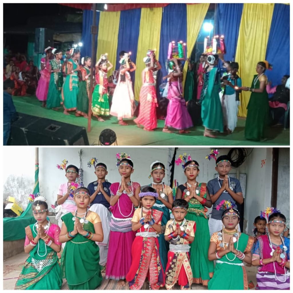 ग्राम बैजनपुरी में नवरात्रि के पावन अवसर पर मां सरस्वती युवा समिति के तत्वाधान में सरस्वती पंडाल पर रात्रिकालीन रंगारंग सांस्कृतिक कार्यक्रम किया गया जिसमें में सामूहिक नृत्य , एकल नृत्य , युगल नृत्य वह छत्तीसगढ़ी करमा ददरिया राउत नाचा पंथी सहित विविध कार्यक्रम आयोजित किया गया था । इस कार्यक्रम को जय साधु बाबा रिकॉर्डिंग डांस मंडली के नन्हे बच्चों द्वारा किया गया जिसमें 5 वर्ष के बच्चे से लेकर 18 वर्ष तक की बच्चों ने भाग लिया । इस कार्यक्रम को मंच पर सुसज्जित करने का कार्य पारख देवांगन , ताहिर चांद गावरे दिनेश नायक ने किया है बैजनपुरी पहली बार है जब कम उम्र के बाल कलाकारो द्वारा मंच से लोगों को अपने कलाकारी से मनमोहित किया । इस कार्यक्रम में आकर्षण की केंद्र रही लड़कियों की राउत नाचा रही तो जस गीत ने दर्शको के बीच समा बांधा तो वही हास्य नाटक में ” खोड़वा की मया ” ने लोगो को जमकर हसाया इस कार्यक्रम में भाग लेने वाले बाल कलाकार संजना निषाद,ओजस्वी कोरेटिया , भूमिका गोटा , दिशा ठाकुर ,भावना सलाम , भावेश रजक , बिंदिया गोटा , प्रियंका चक्रधारी , संध्या चक्रधारी , नेहा देवांगन , वंशराज ठाकुर ,हिमेश चक्रधारी , खेम कुमार सलाम , एवन कोमा , वाशिमी चक्रधारी सहित अन्य बाल कलाकारों ने अपनी कला की प्रदर्शन किया जिसे दर्शकों ने जमकर अपना प्यार लुटाया ।