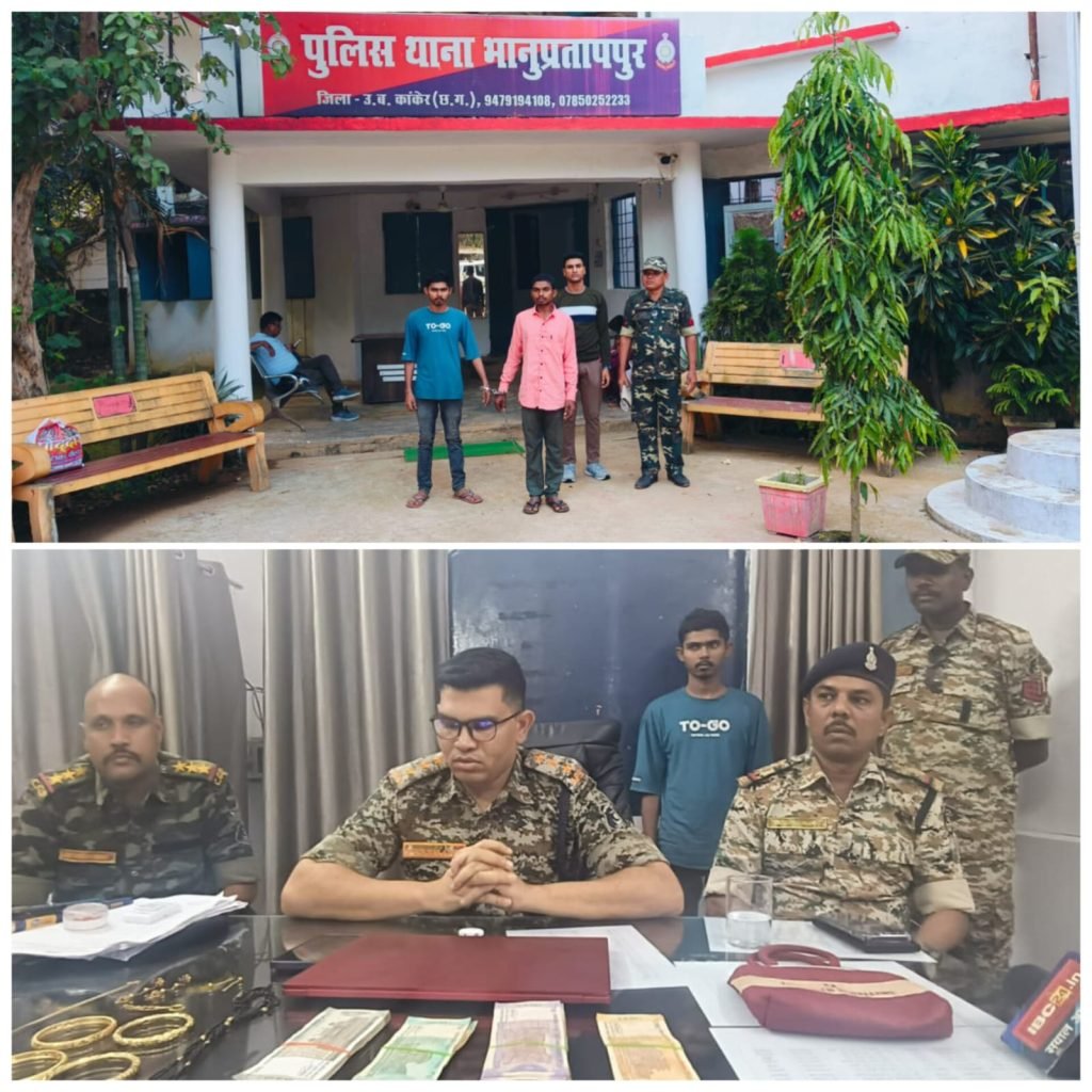 दिनांक 07 नवम्बर 2024 को प्रार्थी रवि विश्वास पिता किरण विश्वास उम्र 56 वर्ष निवासी शंकर नगर मुल्ला थाना भानुप्रतापपुर जिला कांकेर ने थाना आकर रिपोर्ट दर्ज कराया की दिनांक 07.11.2024 को रात्रि में लगभग 1:00 बजे से 5:00 के मध्य अज्ञात चोर द्वारा घर का दरवाजा में लगे जली को काटकर व कुंडी तोड़कर घर अंदर घुसकर घर में रखे एक सफेद रंग का लेडिस बैग जिसमें आधार कार्ड, पैन कार्ड, वोटर आईडी, पोस्ट ऑफिस का खाता पासबुक और पीएनबी भानुप्रतापपुर में फिक्स डिपाजिट का बॉन्ड पेपर एवं दूसरे बैग में रखे नगदी 60000 रुपये तथा एक पुरानी इस्तेमाली लैपटॉप INFINIX कंपनी कीमती ₹20000 कुल जुमला ₹80000 रुपए एवम सोने का कंगन को अज्ञात व्यक्ति द्वारा चोरी कर ले जाने की प्रार्थी के लिखित आवेदन पर थाना भानुप्रतापपुर में अपराध क्रमांक 227/2024 धारा 331 (4) , 305(a)BNS पंजीबद्ध कर विवेचना में लिया था l जहां प्रकरण की गंभीरता को देखते हुए वरिष्ठ पुलिस अधीक्षक इंदिरा कल्याण एलिसेला के निर्देशन पर अतिरिक्त पुलिस अधीक्षक भानुप्रतापपुर संदीप पटेल, अनुविभागीय अधिकारी पुलिस प्रशांत सिंह पैकरा के दिशा निर्देश पर रामेश्वर देशमुख थाना प्रभारी भानुप्रतापपुर द्वारा टीम तैयार कर अज्ञात चोर की पता तलाश किया जा रहा था पता तलाश दौरान संदेह के आधार पर प्रार्थी के दुकान में काम करने वाले व्यक्ति दीपक यादव पिता बलराम यादव उम्र 20 वर्ष निवासी मोर मुजहा थाना अमृतपुर जिला फरुखाबाद उत्तर प्रदेश हाल संजय नगर भानुप्रतापपुर (pv75 थाना बांदे)