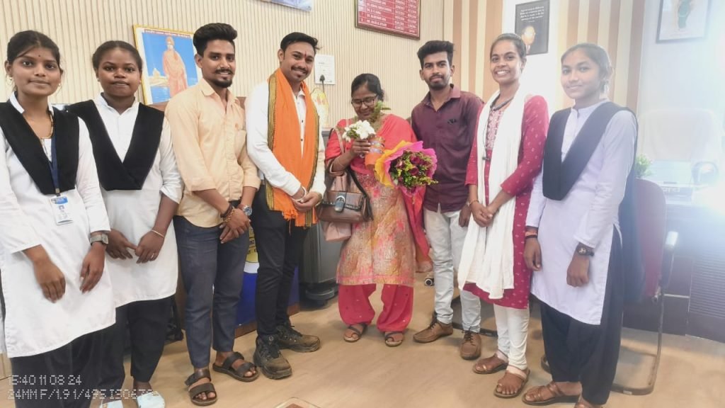 अखिल भारतीय विद्यार्थी परिषद तथा राष्ट्रीय सेवा योजना के छात्रों ने शासकीय एकलव्य महाविद्यालय डौंडीलोहारा में नियुक्त नए प्राचार्य श्रीमती डॉ रोशन आरा जी को गुलदस्ता तथा पौधा देकर बधाई व शुभकामनाएं प्रेषित किया, साथ ही बहुत वर्ष बाद शासकीय एकलव्य महाविद्यालय डौंडीलोहारा में पूर्ण दायित्व के साथ नए प्राचार्य की स्वागत मे अखिल भारतीय विद्यार्थी परिषद के छात्रों ने महाविद्यालय परिसर के बाहर पटाखे फोड़े, प्राचार्य डॉ रोशन आरा द्वारा एबीवीपी के छात्रों तथा राष्ट्रीय सेवा योजना के स्वयं सेवकों को आशीर्वाद देते हुए पढ़ाई के साथ साथ कैरियर के लिए गाइड किया। डॉ रोशन आरा जी शासकीय स्नाकोत्तर महाविद्यालय जामगांव आर में इतिहास विभाग में सहायक अध्यापिका के पद पर पदस्थिति तथा हाल ही में पदोन्नति होकर शासकीय एकलव्य महाविद्यालय डौंडीलोहारा मैं पूर्ण प्राचार्य पद पर आज पद ग्रहण किया। बधाई प्रेषित करने के लिए अखिल भारतीय विद्यार्थी परिषद की जिला संयोजिका मनीषा राणा पूर्व महामंत्री भाजपा युवा मोर्चा मंडल धनेश साहू, अभाविप नगर मंत्री दीपेश साहू ,कार्यालय मंत्री भरत कुमार यादव व सुमन,प्रीती,विद्याभारती, ट्विंकल देवांगन, पुजा , वंदना याचना उपस्थित रहे।
