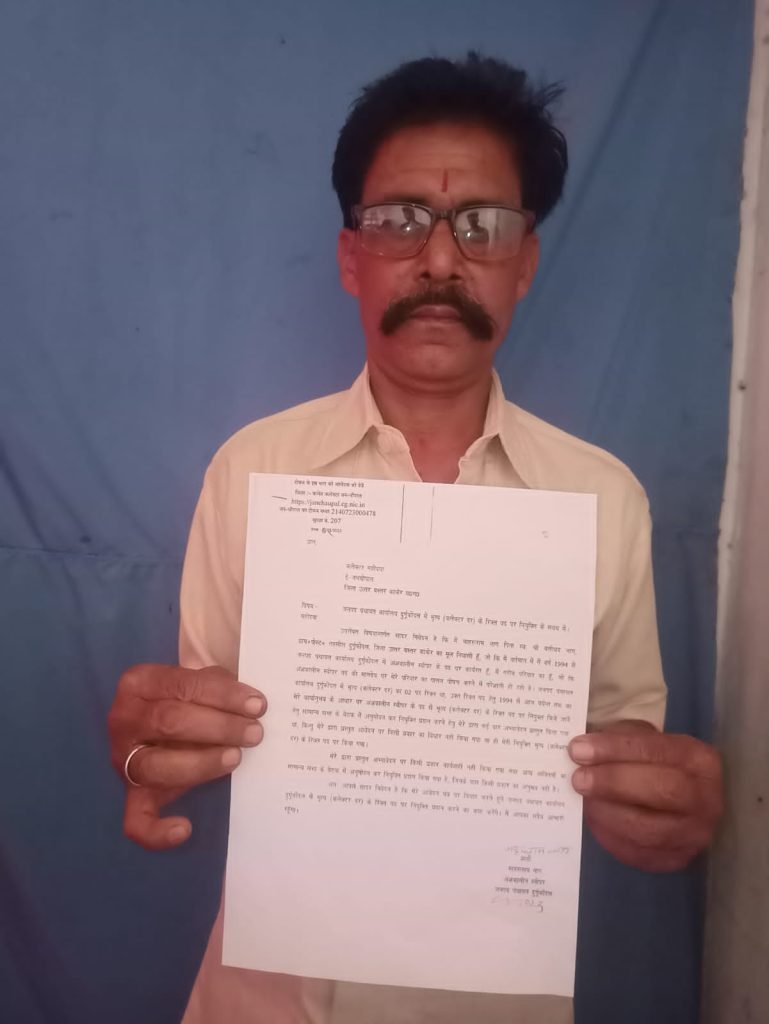 दुर्गकोंदल– जनपद पंचायत दुर्गूकोंदल में पदस्थ अंशकालीन स्वीपर माहरूराम नाग ने कलेक्टर जनदर्शन में आवेदन देकर कलेक्टर दर पर भृत्य पद पर नियुक्त करने की मांग किया है। जनपद पंचायत दुर्गूकोंदल के अंशकालीन स्वीपर माहरूराम नाग ने बताया कि वर्ष 1994 से जनपद पंचायत कार्यालय दुर्गूकोंदल में अंशकालीन स्वीपर के पद पर कार्यरत हूँ, मैं गरीब परिवार का है, जो कि अंशकालीन स्वीपर पद का मानदेय से मेरे परिवार का पालन पोषण करने में परेशानी हो रही है। जनपद पंचायत कार्यालय दुर्गूकोदल में भृत्य (कलेक्टर दर) का 02 पद रिक्त था। इस रिक्त पद हेतु 1994 से आज पर्यन्त तक मेरे कार्यानुभव के आधार पर अंशकालीन स्वीपर के पद से कलेक्टर दर पर भृत्य पद पर नियुक्त किये जाने हेतु सामान्य सभा के बैठक में अनुमोदन कर नियुक्ति प्रदान करने हेतु मेरे द्वारा कई बार अभ्यावेदन प्रस्तुत किया गया था, फिर भी मेरे द्वारा प्रस्तुत आवेदन पर किसी प्रकार का विचार नहीं किया गया, और ना ही मेरा नियुक्ति भृत्य पद पर के नियुक्त नहीं किया गया।