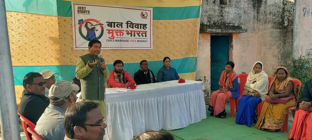 ज्ञात हो कि दिनांक 27/11/2024 को नई दिल्ली के विज्ञान भवन में बाल विवाह मुक्त भारत कार्यक्रम का उदघाटन हुआ जिसका लाईव प्रसारण का कार्यक्रम अधिकारी महिला एवं बाल विकास द्वारा पूरे देश मे किया गया |कार्यक्रम का शुभारंभ सामाजिक कार्यकर्ता नगीना सिंह एवं फूलबाई सिंह के गीत गा रहे हैं हम गीत से किया गया। सभा को संबोधित करते हुए अजमत भाईने कहा कि बाल विवाह समाज के लिए अभिश्राप है । बाल विवाह के दुष्परिणाम बहुत गंभीर है, कम उम्र विवाह होने आने वाले संतान एवं मां दोनों को खतरा रहता है। कुपोषण, बाल मृत्यु, शिशु मृत्यु एवं मातृ मृत्यु का प्रमुख कारण है। शिक्षक हरीश रौतेल ने कहा कि बाल विवाह राष्ट्र के विकास में बाधक है।