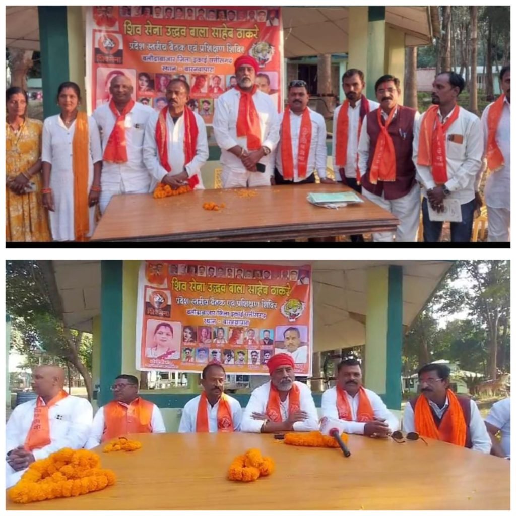 बलौदाबाजार जिले के बारनवापारा अभ्यारण में संपन्न हुई। जिसमें कि शिवसेना द्वारा पूर्व में किए गए हिंदूहित ,जनहित, राष्ट्रहित ,देशहित ,भ्रष्टाचार के विरोध में किए गए कार्यों की समीक्षा किया गया। एवं आगामी समय में शिवसेना( उद्धव ठाकरे )द्वारा प्रदेश के आम जनता के हक और अधिकार के लिए लड़ने हेतु रणनीति बनाया गया एवं आगामी नगरी निकाय, पंचायत चुनाव में सक्रिय रूप से भाग लेने की घोषणा किया गया ।विदित हो कि शिवसेना द्वारा विगत कई वर्षों से छत्तीसगढ़ प्रदेश के आम जनता ,मजदूर ,किसान, नौजवान बेरोजगार, व्यापारियों ,महिलाओं कर्मचारीयो के हक और अधिकार की लड़ाई लड़ते आ रही है। और जनता को उनका हक और अधिकार दिलाने के लिए पूरे प्रदेश में संघर्षरत है। अब शिवसेना द्वारा जनता का आशीर्वाद लेने स्थानीय निकाय के माध्यम से जनता के बीच जाने हेतु रणनीति बनाया गया। इस बैठक में पूरे छत्तीसगढ़ राज्य से समस्त प्रदेश कार्यकारिणी समिति के सदस्यों ने भाग लिया। बैठक का आभार प्रदर्शन शिवसेना प्रदेश महासचिव चंद्रमौली मिश्रा ने किया। एवं समस्त शिवसेना पदाधिकारी कार्यकर्ताओं से आह्वान किया कि बिना किसी डर और भय के हमें प्रदेश के आम जनता के हक और अधिकार की लड़ाई लड़ना है । भ्रष्टाचार के खिलाफ लड़ना है।और हमें आम जनता को उनका सम्मान और उनका हक और अधिकार दिलाना है। और जहां पर भी हिंदू हीत ,राष्ट्रहित के ऊपर कोई बात आएगी शिव सैनिक अपना तन, मन ,धन सब न्योछावर कर राष्ट्र के लिए और हिंदू हित के लिए अपनी जान भी देने से पीछे नहीं रहेंगे।