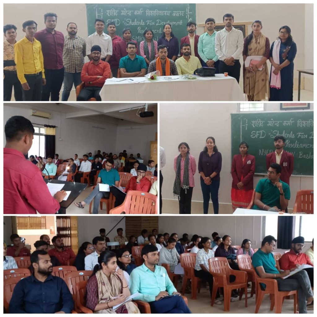 जगदलपुर । आज विकासार्थ विद्यार्थी द्वारा शहीद महेंद्र कर्मा विश्वविद्यालय बस्तर जगदलपुर में राष्ट्रीय पर्यावरण युवा संसद के विश्वविद्यालय स्तरीय प्रतियोगिता का आयोजन किया गया।