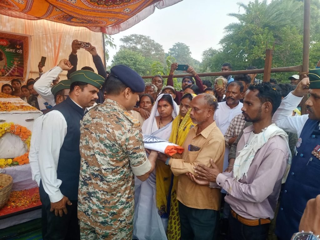दिनांक 04.12.2024 को जिला नारायणपुर के अबुझमाड़ क्षेत्र में पुलिस-नक्सली मुठभेड़ में शहीद प्रधान आरक्षक बीरेन्द्र कुमार शोरी को आज दिनांक 05.12.2024 को गृह ग्राम नरहरपुर जिला कांकेर में राजकीय सम्मान के साथ अंतिम विदाई दी गई। इस दौरान श्री अमित तुकाराम कांबले (भा.पु.से.) पुलिस उप महानिरीक्षक कांकेर रेंज कांकेर, श्री संदीप पटेल (भा.पु.से.) अतिरिक्त पुलिस अधीक्षक भानुप्रतापपुर, महत्वपूर्ण जनप्रतिनिधि, पत्रकारगण, गणमान्य नागरिकगण एवं पुलिस के अन्य अधिकारी/ कर्मचारीगण उपस्थित रहे। शहीद बीरेन्द्र कुमार शोरी वर्ष 2010 में जिला पुलिस बल नारायणपुर में आरक्षक के पद पर भर्ती होकर वर्ष 2018 में प्रधान आरक्षक के पद पर पदोन्नत हुये थे। वर्तमान में नारायणपुर डीआरजी में तैनात थे।