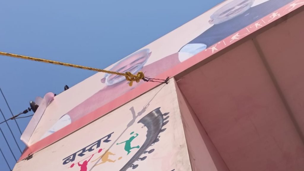 आगामी 15 दिसंबर को बस्तर ओलंपिक के समापन समारोह में केंद्रीय गृह मंत्री अमित शाह का दौरा प्रस्तावित है जिसके लिए युद्ध स्तर पर तैयारियां जारी है।तैयारियों को लेकर पुलिस विभाग के साथ साथ प्रशासन के भी पसीने छूटते नजर आ रहे है तो वही अफरा तफरी में कई कार्यो पर प्रशासन का ध्यान नहीं जा रहा है इसका सीधा उदाहरण है गृह मंत्री अमित शाह के स्वागत के लिए लगाए जा रहे बड़े-बड़े स्वागत द्वार आनन फानन में स्वागत द्वार का निर्माण तो करवा दिया गया है लेकिन भारी भरकम स्वागत द्वार केवल अस्थाई रूप से तैयार किए गए हैं जिसे केवल दो चार रस्सियों की मदद से सपोर्ट दिया गया है। पतले पतले वायर से बड़े स्वागत द्वारा को बांधा गया है इसे देखते हुए यहां आभास होता है की केंद्रीय गृह मंत्री अमित शाह के दौर में कई ऐसी चूक देखने को नजर आ रही है जिससे सुरक्षा व्यवस्था में विपदा आ सकती है, कहा जा सकता है की हल्की आंधी तूफान या किसी वाहनों के टकराने से भी आसानी से स्वागत द्वार गिर सकते हैं जिससे कोई दुर्घटना या राहगीरों को परेशानी हो सकती है। प्रशासन बस्तर ओलंपिक के समापन को सफल बनाने के पीछे कई तैयारियां का जायजा लेने में विफल नजर आ रही है जिससे दुर्घटनाएं होने की संभावनाएं बढ़ जाती है फिलहाल जगदलपुर में दो जगह पर बड़े-बड़े स्वागत द्वारका निर्माण किया गया है जहां पहले चांदनी चौक तो वहीं दूसरा लाल चर्च के नजदीक किया गया है।