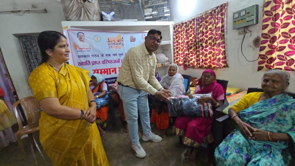 नरहरपुर. छत्तीसगढ़ शासन समाज कल्याण विभाग के निर्देशानुसार सरकार के गठन के एक वर्ष पूर्ण होने के उपलक्ष्य पर जिले के वृद्धाश्रम में निवासरत वरिष्ठ कलाकारों प्रतिभावान दिव्यांग खिलाडियों के लिए समान कार्यक्रम आयोजित किया गया l जिसके तहत बुलबुल शिक्षण प्रशिक्षण केन्द्र द्वारा संचालित एवं समाज कल्याण विभाग द्वारा अनुदानित संस्था मे (वृद्ध आश्रम में उपसंचालक समाज कल्याण एवं विभागीय अधिकारियों ने संस्थागत हितग्राहियों को विभागीय कल्याणकारी योजनाओं) माता-पिता भरण पोषण अधिनियम की जानकारी दी पेशन, सहायक उपकरण की स्थिती पर चर्चा की समस्त वरिष्ठ जनो को श्रीफल, शाल, गर्म कपडे देकर सम्मानित किया गया। वरिष्ठ जनो ने भजन की प्रस्तुति दि इस अवसर पर उपसंचालक समाज कल्याण श्रीमती क्षमा शर्मा, श्रीमती बुलबुल वैद्य, श्री आशीष शोरी, श्रीमती सीता नाग, पुरुषोत्तम मरकाम, आदि समस्त कर्मचारीगण उपस्थित रहे।