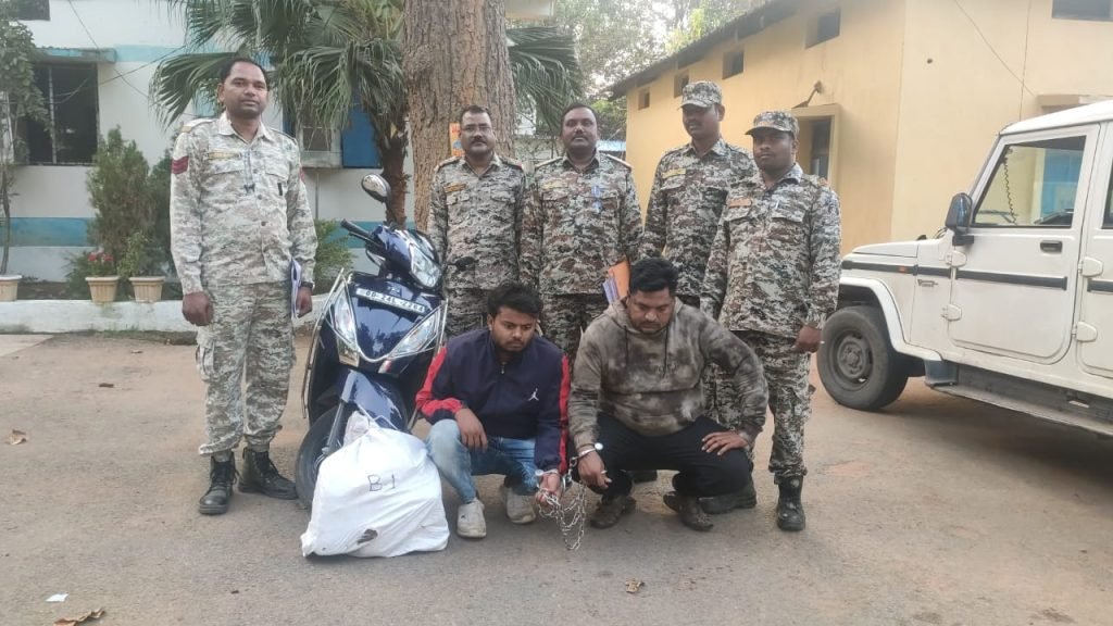 फरसगांव – पुलिस अधीक्षक कोण्डागांव येदुवल्ली अक्षय कुमार के निर्देशन, अतिरिक्त पुलिस अधीक्षक कौशलेन्द्र देव पटेल के मार्गदर्शन में तथा पुलिस अनुविभागीय अधिकारी फरसगांव अनिल विश्वकर्मा के पर्यवेक्षण में थाना फरसगांव पुलिस के द्वारा थाना क्षेत्र में अवैध रूप से सट्टा, जुआ पर अंकुश एवं गांजा पर बड़ी कार्यवाही करते हुये सोमवार को जरिये मोबाईल फोन से मुखबिर के सूचना प्राप्त हुआ कि उड़ीसा, उमरकोट, माकड़ी, रांधना होते हुये फरसगांव के रास्ते से रायपुर की ओर जा रही एक नीले रंग के टीव्हीएस जुपीटर स्कूटी क्रमांक ओ.डी. 24 एल 2264 में अवैध मादक पदार्थ गांजा का परिवहन किया जा रहा है। कि सूचना पर फरसगांव, माकड़ी रोड जुगदेही चौक के पास रोड़ किनारे में नाकेबंदी की गई जो मुखबिर के बताए अनुसार एक नीले रंग के टीव्हीएस जुपीटर स्कूटी क्रमांक ओ.डी. 24 एल 2264 को रोककर हमराह स्टाफ के तलाशी ली गई जो स्कूटी वाहन के सामने एक सफेद बोरी के अन्दर में 03 पैकेट गांजा मिला स्कूटी चालक से पूछताछ करने पर अपना मणीशंकर बनिक उर्फ मिट्टू पिता परिमल बनिक उम्र 27 वर्ष निवासी सिलाटी थाना उमरकोट जिला नवरंगपुर उड़ीसा का रहने वाला बताया। जिनके कब्जे से गांजा कुल 15.300 किलोग्राम कीमती 01 लाख 50 हजार रूपये एवं टीव्हीएस स्कुटी कीमती 90 हजार रूपये एवं एक नग मोबाईल कीमती 20 हजार रूपये कुल जुमला रकम 2 लाख 60 हजार को अपराध क्रमांक 179/2024 धारा 20 बी एनडीपीएस एक्ट में जप्त किया गया तथा थाना फरसगांव के अपराध क्रमांक 165/2024 एनडीपीएस एक्ट की धारा 20 बी में एक अन्य आरोपी जयदेव साहा पिता जितेन्द्र साह उम्र 40 वर्ष निवासी खाडा यू.व्ही. 12 थाना उमरकोट जिला नवरंगपुर उडीसा सोमवार को गिरफ्तार किया गया।
