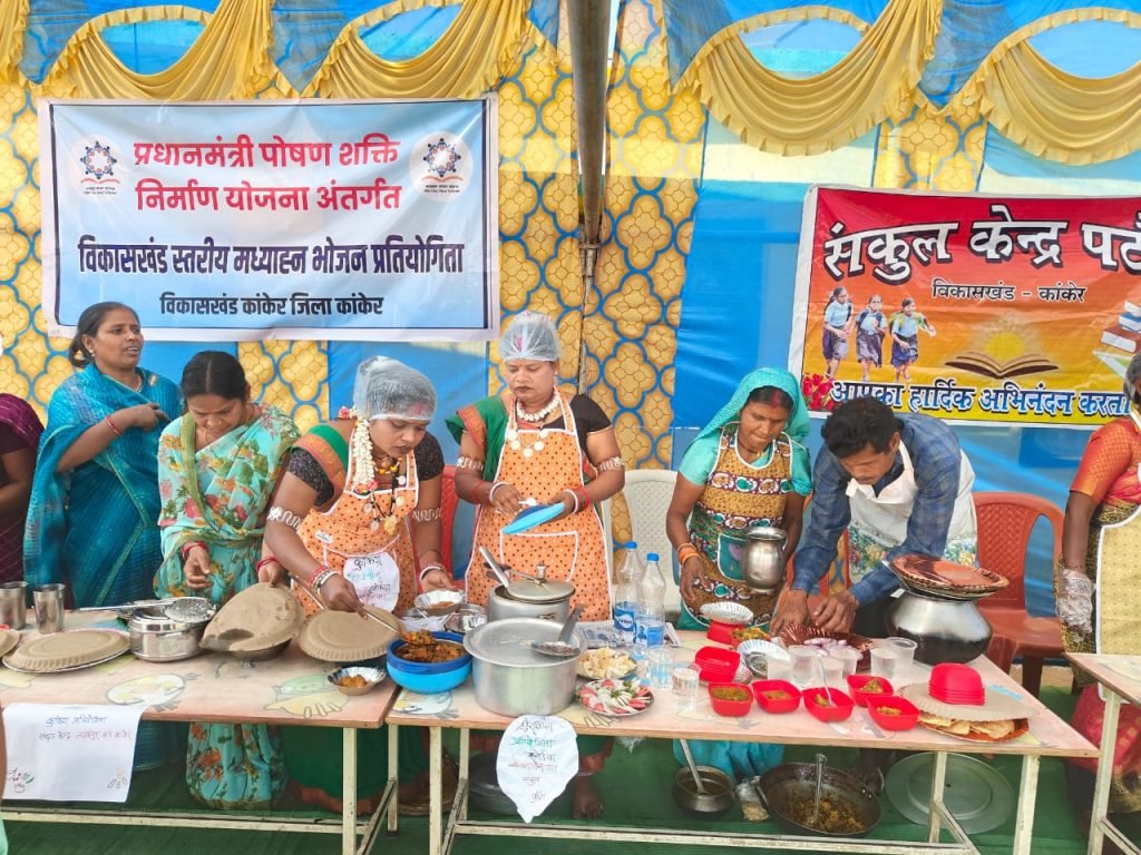 कांकेर:- कांकेर विकास खंड स्तरीय मध्यान्ह भोजन रसोइया का कूकिंग प्रतियोगिता का आयोजन प्राथमिक शाला कोदाभाट डोंगरीपारा में किया गया। कांकेर ब्लाक के सभी संकुल से चयनित रसोइया विभिन्न प्रकार के चांवल, दाल एवं सब्जी स्थल पर ही निर्धारित समय पर बनाए। निर्णायक गण सीमा महादेवकर व्याख्याता कन्या उच्चतर माध्यमिक विद्यालय कांकेर, मोना रजक शिक्षक माध्यमिक शाला गढ़पिछवाड़ी, जया गौतम व्याख्याता हाईस्कूल दसपुर द्वारा चयन किया गया जिसमें प्रथम पटौद संकुल, द्वितीय कंकालीनपारा एवं तृतीय सिदेसर संकुल के रसोइया स्थान प्राप्त किए। इस अवसर पर केजू राम सिन्हा खंड शिक्षा अधिकारी कांकेर, दीपक ठाकुर सहायक खंड शिक्षा अधिकारी, डीके भास्कर बीआरसी कांकेर, संकुल समन्वयक हेमेंद्र साहसी, नीतेश उपाध्याय, रोमन जैन, कमलेश साहू, दिलीप साहू, प्रशांत मेश्राम, खंड शिक्षा कार्यालीन स्टाफ समर यादव, टेश्वर जैन एवं कांकेर ब्लाक से रसोइया, शिक्षक स्टाफ उपस्थित रहे।