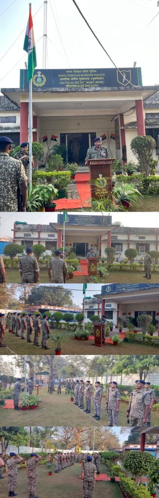 इस मौके पर श्री राकेश कुमार ने आईटीबीपी के अमर शहीदों और देश को आजादी दिलाने में कुर्बानी देने वाले स्वतंत्रता सेनानियों को याद कर उन्हें शतशत नमन किया। साथ ही आईटीबीपी के हिमवीरों द्वारा छत्तीसगढ में नक्सल विरोधी अभियानों में जवानों द्वारा की जा रही ड्यूटियों के लिए उनकी प्रशंसा की और भविष्य में आने वाली चुनौतियों का डटकर सामना करने का आह्वान किया। उन्होंने कहा कि हमें देश की आंतरिक सुरक्षा को बनाए रखने में अपना अहम योगदान देना है और देश को अस्थिर करने वाली ताकतों का सामना बहादुरी एवं साहस के साथ करना है। श्री राकेश कुमार ने सभी को गणतंत्र दिवस की बधाई देते हुए उनके स्वस्थ व खुशहाल जीवन की कामना की।