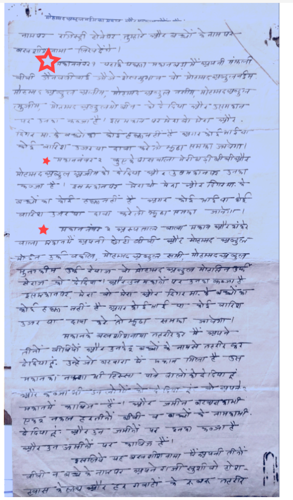 उन्होंने गांव के मंदिर, तालाब और गौठान के लिए अपनी जमीन मस्जिद, मदरसे और कब्रिस्तान के लिए भी जमीन दान देने की बातों को सिरे से नकारते हुए कहा कि सन 1952 के दस्तावेजों के आधार पर उनके द्वारा कोई दान नहीं देने की बात कहीं।