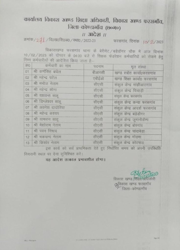 इनकी एलान के बाद प्रशासनिक तैयारी जोरो से चल रही है जैसे पहले भी आंदोलनों में देखा गया है । वहीं शासन व प्रशासन पुलिस सहित शिक्षा विभाग आंदोलन को अप्रभावी बनाने व रायपुर पहुंचने से रोकने के प्रयास में माध्यमिक स्कूल के प्रधान पाठको तथा संकुल समन्वयको की पहचानने, रोकने की ड्यूटी लगाई गई है खबर है कि जगह जगह चेक पोस्ट लगा चिन्हांकित कर वाहनों को रोकने की तैयारी की गई है