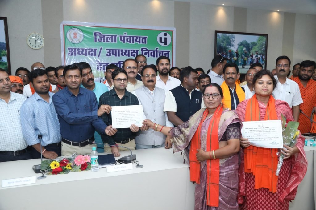 कांकेर त्रिस्तरीय पंचायत आम निर्वाचन-2025 के अंतर्गत जिला पंचायत कांकेर के अध्यक्ष एवं उपाध्यक्ष पद हेतु निर्वाचन कार्यक्रम आज जिला पंचायत के सभाकक्ष में सम्मिलन सम्पन्न हुआ। प्राप्त जानकारी के अनुसार जिला पंचायत के सभी 13 निर्वाचित सदस्यों में से अध्यक्ष पद हेतु श्रीमती किरण नरेटी और श्रीमती झरना धु्रव ने नामांकन फॉर्म भरा, जिसमें सभी सदस्यों के द्वारा किए गए वोट के आधार पर श्रीमती किरण को 10 और श्रीमती झरना को 03 वोट प्राप्त हुए। इस प्रकार श्रीमती किरण नरेटी को बहुमत के आधार पर जिला पंचायत अध्यक्ष पद के लिए निर्वाचित मानते हुए उन्हें प्रमाण-पत्र प्रदाय किया गया। इसी प्रकार जिला पंचायत उपाध्यक्ष हेतु श्रीमती ताराबती ठाकुर और श्रीमती सुलोचना मेश्राम ने नामांकन फॉर्म भरा था। वोटिंग के उपरांत श्रीमती ताराबती को 09 और श्रीमती सुलोचना को 04 वोट प्राप्त हुए। इस प्रकार बहुमत के आधार पर उपाध्यक्ष पद हेतु श्रीमती ताराबती ठाकुर को निर्वाचित कर उन्हें प्रमाण-पत्र दिया गया। उक्त निर्वाचन प्रक्रिया जिला पंचायत के सीईओ श्री हरेश मंडावी, पीठासीन अधिकारी एवं एसडीएम कांकेर श्री अरूण वर्मा तथा सहायक पीठासीन अधिकारी एवं उप संचालक पंचायत श्री कमल सिदार की उपस्थिति में सम्पन्न हुआ।