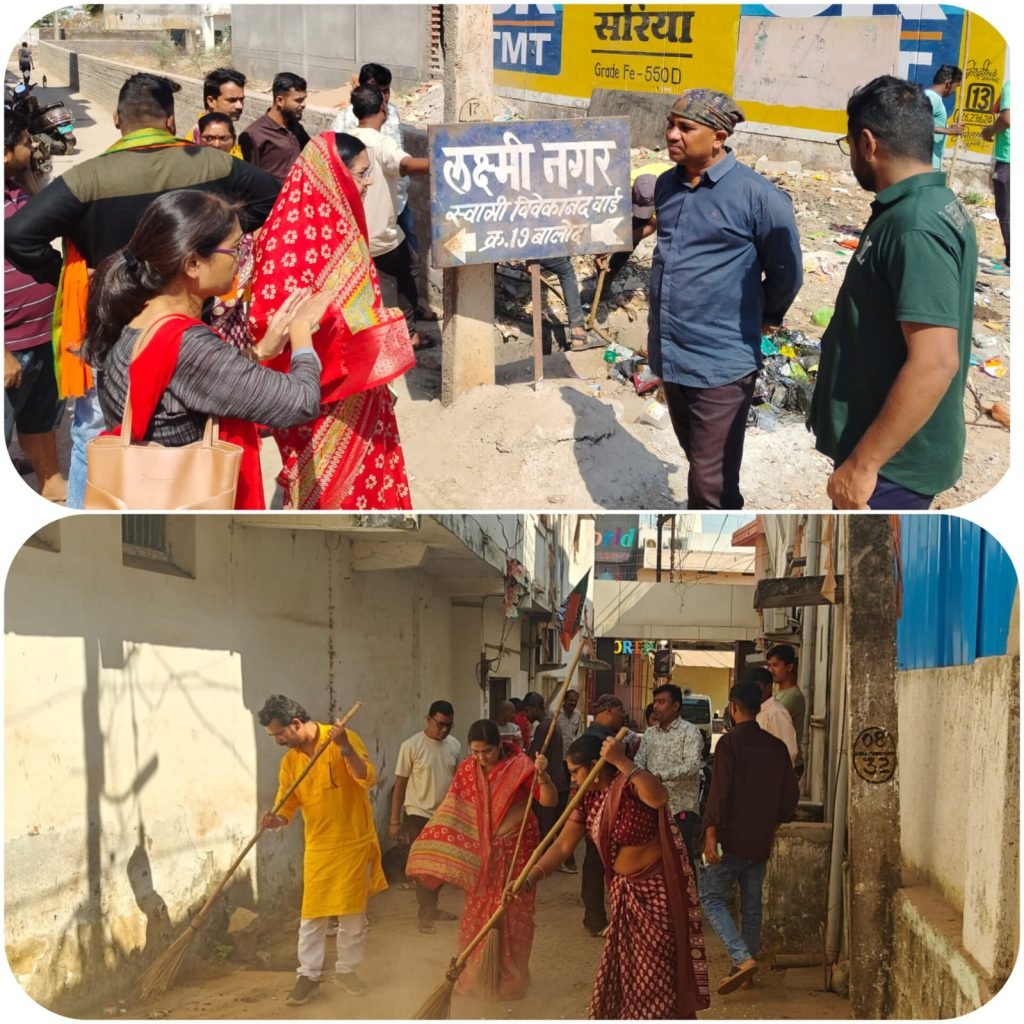 बालोद । बालोद नगर पालिका अध्यक्ष प्रतिभा चौधरी उपाध्यक्ष कमलेश सोनी ने शपथ ग्रहण के बाद सफाई अभियान को लेकर संवेदनशील नजर आए आज शहर के विभिन्न स्थानों में विशेष सफाई अभियान की शुरुवात की गयी लोगो की शिकायत को तवज्जो देते हुए आज पालिका के नवनिर्वाचित जनप्रतिनिधियों एवं भाजपा संगठन से जुड़े लोगों ने स्वयं साफ सफाई में पालिका कर्मचारियों का सहयोग भी किया वहीं पालिका अध्यक्ष प्रतिभा चौधरी ने सफाई कर्मचारियों को शहर की सफाई व्यवस्था को सुधारने निर्देश दिया आज सफाई अभियान के तहत बालोद के स्वयम्भू गणेश मंदिर मरारपारा के आसपास एवं गांधी प्रतिमा तथा पुलिस लाइन की साफ सफाई की गई तत्पश्चात चर्च के सामने वार्ड 19 में नाली जाम होने के कारण आसपास के लोगो की शिकायत पर पालिका अध्यक्ष अपने पार्षदों के साथ वहां पहुंची और लगभग 1 घण्टे स्वयं खड़े रहकर नालियों की सफाई भी कराई पालिका के जनप्रतिनिधियों के इस कार्य से वार्डवासियों में हर्ष व्याप्त है आज हुए सफाई अभियान में पार्षद प्रीतम यादव गिरिजेश गुप्ता दीपक जैन गोकुल ठाकुर कांति साहू श्यामा यादव सहित भाजपा मंडल अध्यक्ष अमित चोपड़ा पूर्व एल्डरमेन विनोद जैन एवं पदाधिकारी कार्यकर्ता उपस्थित रहे