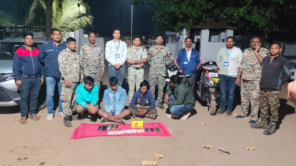 फरसगांव – फरसगांव थाना पुलिस ने जुआरियो पर बड़ी कार्यवाही की है। देर रात पुलिस ने फार्म हाउस में घेराबंदी कर चार जुआरियो को पकड़ा है।