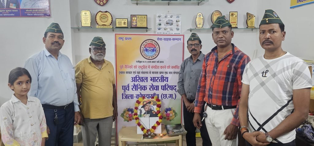l इसके बाद जनरल बिपिन रावत अमर रहें और भारत माता की जय के नारे लगाए गए l बस्तर संभाग प्रभारी सुब्रत साहा ने बताया कि भारत के पहले चीफ ऑफ डिफेंस स्टाफ, जनरल बिपिन रावत जी की जयंती पर कोटि-कोटि नमन करते हैं l उनका अदम्य साहस, कर्तव्यनिष्ठा और राष्ट्रसेवा के प्रति समर्पण हर भारतीय के लिए प्रेरणास्रोत है। जिलाध्यक्ष सुरज यादव ने बताया कि जनरल बिपिन रावत जी का जीवन भारतीय सेना के गौरवशाली इतिहास का स्वर्णिम अध्याय है। देश की रक्षा और सैन्य सशक्तिकरण में उनके अभूतपूर्व योगदान को कभी भुलाया नहीं जा सकता। उनकी रणनीतिक दृष्टि और नेतृत्व ने भारत को नई ऊंचाइयों तक पहुंचाया। उनके आदर्श और विचार हमें सदैव देश सेवा के पथ पर अग्रसर रहने की प्रेरणा देते रहेंगे। इस अवसर पर अखिल भारतीय पूर्व सैनिक सेवा परिषद कोंडागांव के संरक्षक एवं बस्तर संभाग प्रभारी सुब्रत साहा, जिलाध्यक्ष सूरज यादव, सचिव उमेश साहू, कोषाध्यक्ष सोमेश्वर भारती और पूर्व सैनिक प्रेम सिंह देवांगन उपस्थित रहे l