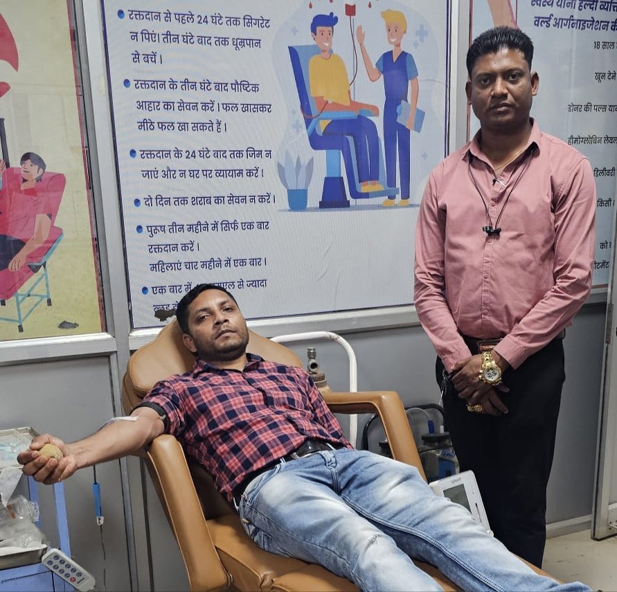 दिनाँक 28 मार्च 2025 को सोमनाथ नाग उम्र 40 वर्ष निवासी हसलनार को रक्त की कमी के कारण जिला अस्पताल कोंडागाँव में भर्ती कराया गया था जिनको A+ रक्त की तत्काल आवश्यकता थी जिसकी जानकारी मिलते ही भारतीय थल सेना में सेवारत सैनिक उमेन्द्र मरकाम जो कि छुट्टियों में अपने गृह ग्राम चिपावंड आए हुए थे तत्काल जिला अस्पताल पहुंचकर जरूरतमंद को रक्तदान किया
