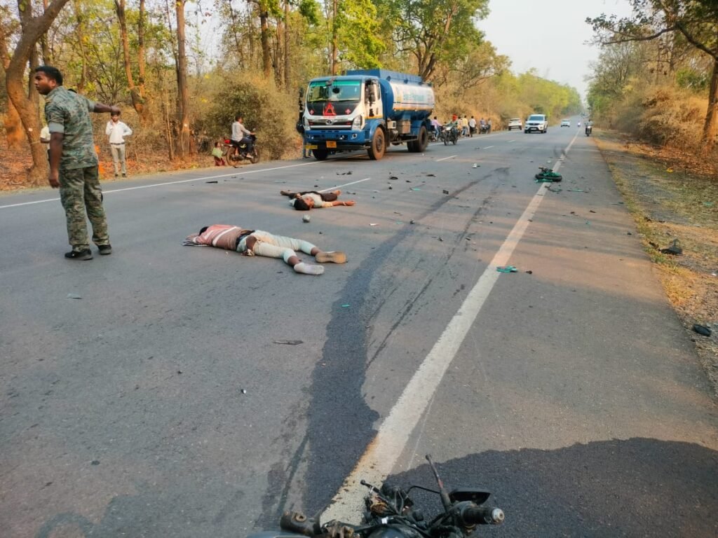 बाइक और टैंकर भिड़ंत की आमने सामने भिड़ंत। हादसे में तीन की बाइक सवारों की मौत। घटना नेशनल हाइवे 30 फरसगांव चिचाड़ी नाला के पास का। मौके पर पहुंची फ़रसगाँव पुलिस।
