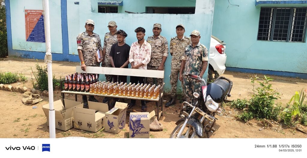 कोंडागांव – पुलिस अधीक्षक वाय अक्षय कुमार के आदेशानुसार एवं अति. पुलिस अधीक्षक महोदय कौशलेन्द्र देव पटेल के निर्देशन पर बांसकोट थाना पुलिस क्षेत्र में लगातार अवैध शराब रेड की कार्यवाही किया रही है । इसी कम में बुधवार को मुखबिर की सूचना पर उडीसा राज्य से छत्तीसगढ़ की ओर दो व्यक्ति मोटर सायकल से शराब लेकर आ रहे थे, जिन्हें ग्राम मारंगपुरी जंगल भारतमाला रोड के पास चेंकिगं के दौरान रोका गया। बाइक चला रहे व्यक्ति ने अपना नाम प्रेम कुंजाम पिता चैतराम कुंजाम उम्र 22 वर्ष निवासी हात्मा और बैठा व्यक्ति अपना नाम अतीन नेताम पिता नबीराम नेताम उम्र 23 वर्ष निवासी हात्मा का होना बताया । उनके पास मोटर सायकल में सीट के बीच में रखे दो जूट बोरी की तलाशी लेने पर बोरी में दो कार्टुन में कुल 24 नग KINGFISHER अंग्रेजी शराब बियर का बाटल कुल मात्रा 15 लीटर 600 एम एल कीमत 4080 रू, तथा दो कार्टून में कुल 96 नग Mcdowells No 1 का क्वार्टर कुल मात्रा 17 लीटर 280 एम एल कीमती 17280 रू जुमला मात्रा 32 लीटर 880 एम एल कुल कीमती 21360 रु एवं अवैध शराब परिवहन करते वाहन एच एफ डिलक्स मोटर सायकल क. सीजी 05 बी 9185 के संबंध में धारा 94 बी.एन.एस.एस. का नोटिस दिया गया, जो उक्त नोटिस में शराब रखने व परिहन करने के संबंध में आरोपियों के द्वारा कोई दस्तावेज नही होना लिखकर दिया गया कि अवैध शराब व मोटर सायकल व आरोपियों का 02 नग मोबाईल को जप्त किया गया है। आरोपियों का कृत्य आबकारी अधिनियम की धारा 34 (2) का पाये जाने से अपराध पंजीबद्ध कर विवेचना में लिया गया व आरोपियों को विधिवत् गिरफ्तार कर गिरफ्तारी की सूचना परिजनो को दी गई व माननीय न्यायालय के समक्ष पेश कर न्यायिक रिमाण्ड पर जेल भेजा गया। पुलिस अधीक्षक के आदेशानुसार आगे भी अवैध शराब तस्करी करने वालों पर कार्यवाही जारी रहेगी। उक्त कार्यवाही में चौकी प्रभारी बांसकोट निरीक्षक रोशन कुमार कौशिक, प्रआर. रामकृष्ण सोम, आरक्षक 995 मनोज मरकाम, का विशेष योगदान रहा।
