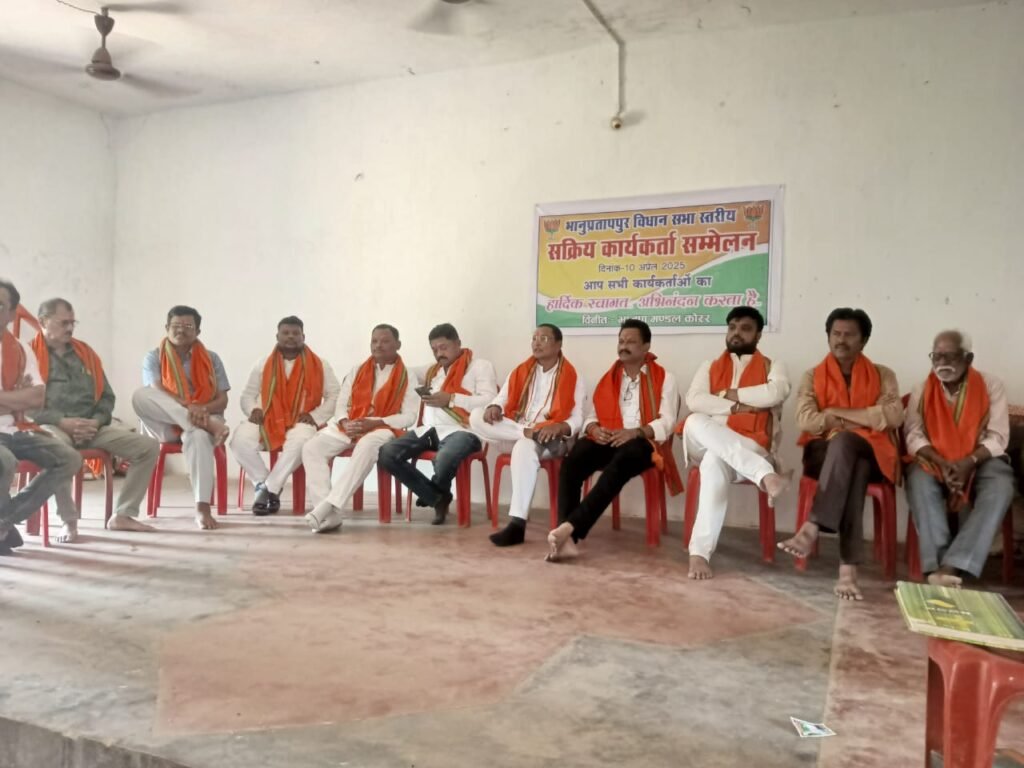 भानुप्रतापपुर @भारतीय जनता पार्टी विधानसभा स्तरीय सक्रिय कार्यकर्ता सम्मेलन का आयोजन आज 11 अप्रैल को कोरर हल्बा समाज सामुदायिकभवन (जंजालीपारा ) में संपन्न हुआ कार्यक्रम का शुभारंभ भारत माता एवं डॉक्टर श्यामा प्रसाद मुखर्जी, पंडित दीनदयाल उपाध्याय ,दंतेश्वरी मैय्या ,शहीद गैंद सिंह की छायाचित्र पर माल्यार्पण पूजा अर्चना कर कार्यक्रम की विधीवत शुरुआत की गई , सर्वप्रथम सक्रिय सदस्य सम्मेलन कार्यक्रम के उद्देश्य के बारे में जिला भाजपा महामंत्री बृजेश सिंह चौहान ने विस्तार पूर्वक सभी उपस्थित भानुप्रतापपुर विधानसभा के पांचो मंडल के कार्यकर्ताओं को पार्टी की रीति नीति के बारे में अपना उद्बोधन दिया, कार्यक्रम के प्रमुख वक्ता पुर्व भाजपा जिला अध्यक्ष सतीश लटिया ने अपने उद्बोधन में भाजपा की चुनावी सफलता एवं संरचनात्मक विस्तार के बारे में संपूर्ण जानकारी विस्तार पूर्वक कार्यकर्ताओं को दि साथ ही अपना मार्गदर्शन इस प्रशिक्षण शिविर में दिया जन-संघ से लेकर भारतीय जनता पार्टी तक का पूर्व प्रधानमंत्री अटल बिहारी वाजपेई जी से लेकर भारत के प्रधानमंत्री नरेंद्र मोदी तक के केंद्र की सरकार की योजनाओं के बारे में संपूर्ण जानकारी प्रदान की, वहीं दूसरे वक्ता के रूप में वरिष्ठ भाजपा कार्यकर्ता अभय पांडे जी ने भारतीय राजनीति में भारतीय जनता पार्टी द्वारा लाये गये परिवर्तन के बारे में विषय वार प्रकाश डालते हुये कार्यकर्ताओं को संबोधन किया, वही तीसरे वक्त के रूप में सहकारिता प्रकोष्ठ के जिला संयोजक वरिष्ठ भाजपा कार्यकर्ता हेम प्रकाश शिवहारे जी ने अपने विषय की बिंदुवार जानकारी सहित प्रधानमंत्री के रूप में नरेंद्र मोदी जी के साथ लगभग 11 वर्षों के विकसित भारत की ओर यात्रा के विषय में संपूर्ण जानकारी प्रदान किया गया, कार्यक्रम का आभार प्रदर्शन भाजपा जिला उपाध्यक्ष छाया विधायक गौतम ऊईके ने किया एवं कार्यक्रम का संचालन सेवा पखवाड़ा कार्यक्रम के जिला सहसंयोजक पूर्व मंडल अध्यक्ष नरोत्तम सिंह चौहान ने किया इस अवसर पर भाजपा जिला कार्यालय प्रभारी रत्नेश सिंह, अनुसूचित जनजाति प्रदेश कोषाध्यक्ष छत्र प्रताप दुगा, युवा मोर्चा जिला अध्यक्ष राजा पांडे, भानुप्रतापपुर नगर पंचायत अध्यक्ष निखिल सिंह राठौड़, जनपद अध्यक्ष चारामा श्रीमती रामेश्वरी भास्कर ,भाजपा मंडल अध्यक्ष कोरर पियूष कश्यप, भानप्रतापपुर भाजपा मंडल अध्यक्ष डिगेश खापर्डे,हाराडुला मंडल अध्यक्ष हेम मंडावी दुर्गूकोंदल भाजपा मंडल अध्यक्ष विदे सिंह कल्लो ,ढाल सिंह सिन्हा , भगवान महावीर स्वामी के जन्मदिन के शुभ अवसर पर पर भाजपा कार्यकर्ता गौतम लुक्कड़ जी ने आए हुए सभी अतिथियों का एवं सम्मेलन में आए हुए सभी सदस्यों का स्वा