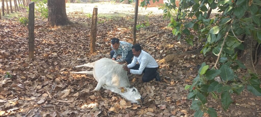 शनिवार दोपहर करीब 12 बजे स्थानीय लोगों और पत्रकारों ने सड़क किनारे एक गंभीर हालत में पड़े पशु को देखा। तत्परता दिखाते हुए उन्होंने तुरंत पशु चिकित्सा विभाग से संपर्क किया। सूचना मिलते ही पशु चिकित्सक लक्ष्मण सोरी मौके पर पहुंचे और घायल पशु का उपचार किया।