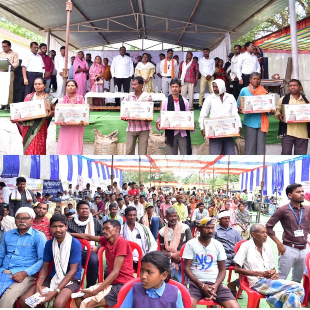 कार्यक्रम में मुख्य अतिथि विधायक श्री टेकाम एवं अतिथियों ने सुशासन तिहार में प्राप्त मांगों के निराकरण पश्चात शासन की जनकल्याणकारी योजनाओं के तहत हितग्राहियों को सामग्रियों का वितरण किया। इसके अंतर्गत मछली पालन विभाग द्वारा 02 नग जाल का वितरण, 06 हितग्राहियों को जाति प्रमाण पत्र एवं निवास प्रमाण पत्र का वितरण, 10 हितग्राहियों को राशन कार्ड का वितरण, 11 व्यक्तियों को पेंशन स्वीकृति आदेश, 04 हितग्राहियों को आयुष्मान कार्ड, 04 कृषकों को किसान किताब, 06 गर्भवती महिलाओं को पोषण टोकरी और उद्यानिकी विभाग द्वारा 22 हितग्राहियों को सब्जी बीज वितरण और कृषि विभाग द्वारा 06 किसानों को धान बीज का वितरण किया गया।