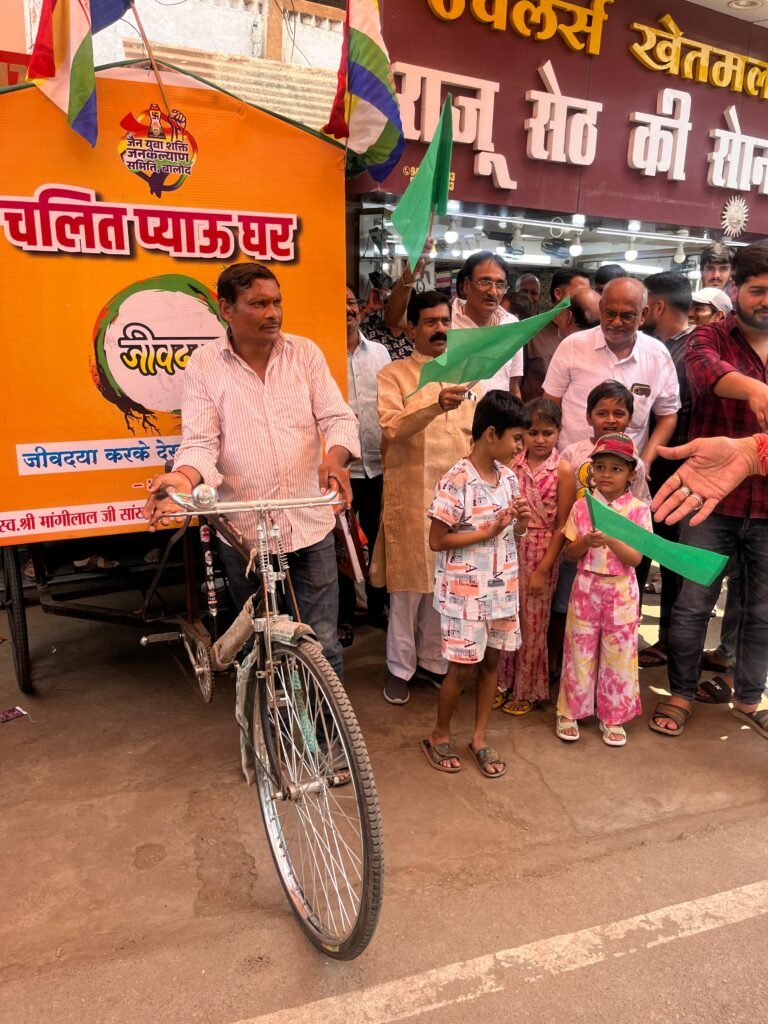 *चलित प्याऊ घर को हरी झंडी दिखाकर किया गया शुभारम्भ,,,,,मानव सेवा में एक कदम और उठाया जैन युवा शक्ति ने*