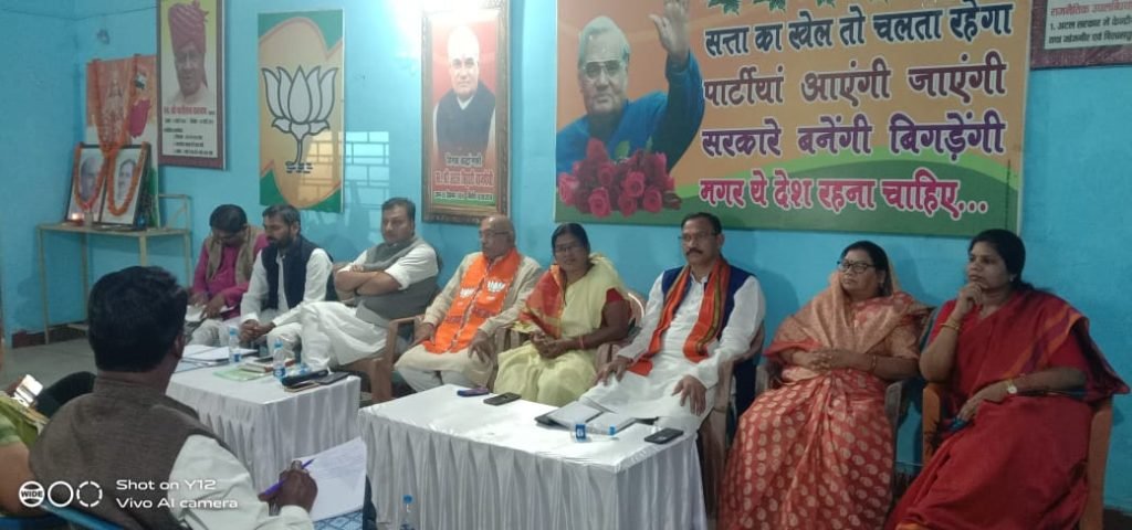 जिलाध्यक्ष अनिल केशरवानी जी के द्वारा एकात्म व मानव वाद के प्रणेता पंडित दीनदयाल पर प्रकाश डाला साथ ही पार्टी द्वारा समर्पण की राशि के विषय मे भी जानकारी दी गई। जिसमे साधारण कार्यकर्ताओ का अंश दान की राशि ऐप्प के माध्यम से आन लाइन पांच रुपए से लेकर 2000 रुपए चेक के द्वारा समर्पण की राशि देने पर विचार किया गया, साथ ही कोर कमेटी मे भरतपुर विधानसभा के प्रभारी व मोर आवास, मोर अधिकार के सह संयोजक रितेश गुप्ता ने आगामी योजना की जानकारी दी। वंही संभागीय प्रभारी भारत सिंह सिसोदिया ने भी जिलास्तर पर मोर आवास मोर अधिकार आंदोलन की मंडलवार जानकारी लिया गया जिसमे आगामी 21 फरवरी को मोर आवास मोर अधिकार के हितग्राहियो द्वारा खड़गवा से पदयात्रा प्रारम्भ हो कर शिवपुर बाजार मे सभा कर समापन किया जायेगा साथ ही 22 फ़रवरी को दोपहर 2 बजे हितग्राहियो व पार्टी के कार्यकर्ताओ के द्वारा विधायक निवास चिरिमिरी चीफ हॉउस गोदरीपारा का घेराव किया जाना है। उक्त बैठक मे जिला के महामंत्री वीरेंद्र राणा, रामलखन सिंग,दुर्गा शंकर मिश्रा, जनार्दन साहू, श्रीमती रीता आईच, जमुना पाण्डेय, संजय सिंग, श्रीमती कमला गड्डेवा, अरुणोदय पाण्डेय, सरजू यादव, मुकेश जायसवाल,श्रीमती राजकुमारी बैगा, सोनमती उरे, इंदु पनेरिया, मुनमुन जैन, प्रतिमा पटवा, संतन चौहान, संजय गुप्ता, राजेंद्र दास, मनोज केशरवानी , मंडल अध्यक्ष रघुनन्दन यादव, आलोक जायसवाल, विनोद गुप्ता, राम लाल साहू आदि लोग उपस्थित थे।