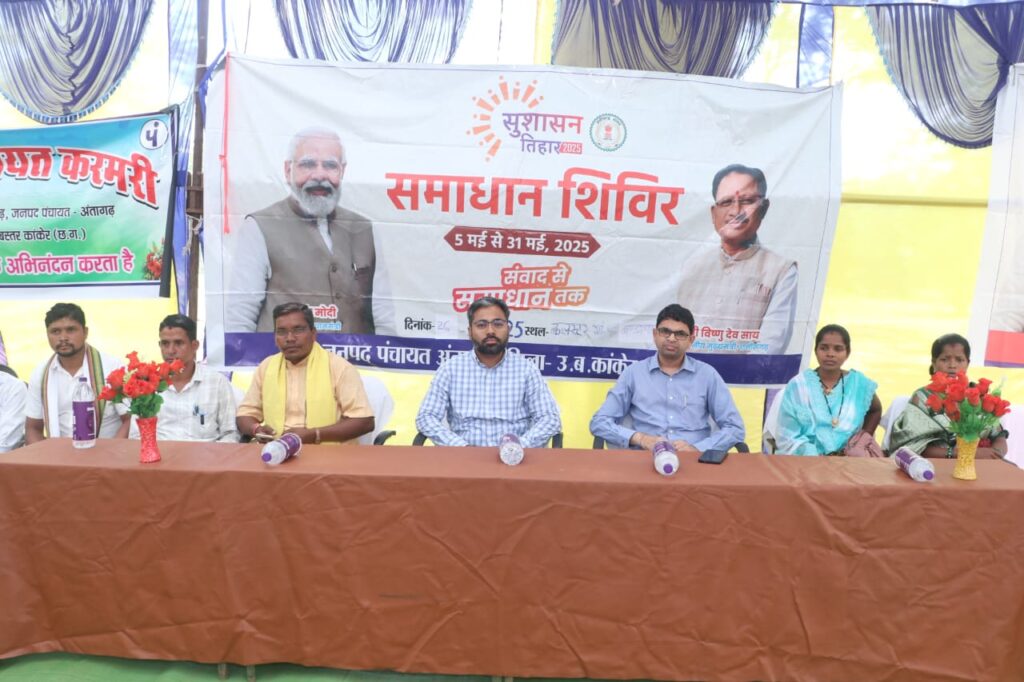 कांकेर/ प्रदेश सरकार की मंशानुसार आम जनता की समस्याओं के समयबद्ध निराकरण, शासन की जनकल्याणकारी योजनाओं के सफल क्रियान्वयन हेतु आज विकासखंड अंतागढ़ के दूरस्थ अतिसंवेदनशील तथा सरहदी ग्राम बण्डापाल में जिला स्तरीय समाधान शिविर आयोजित किया गया, जहां ग्रामीणों को विभागीय योजनाओं की जानकारी दी गई, साथ ही प्राप्त आवेदनों पर संबंधित विभागों के द्वारा की गई कार्यवाही के बारे में भी बताया गया। माओवाद प्रभावित सुदूरवर्ती अतिसंवेदनशील ग्राम बण्डापाल में आयोजित समाधान शिविर में ग्रामीणों के द्वारा अपनी समस्याओं और मांगों से संबंधित आवेदनों पर हुई कार्यवाही के बारे प्रत्येक आवेदक को अवगत कराया गया।