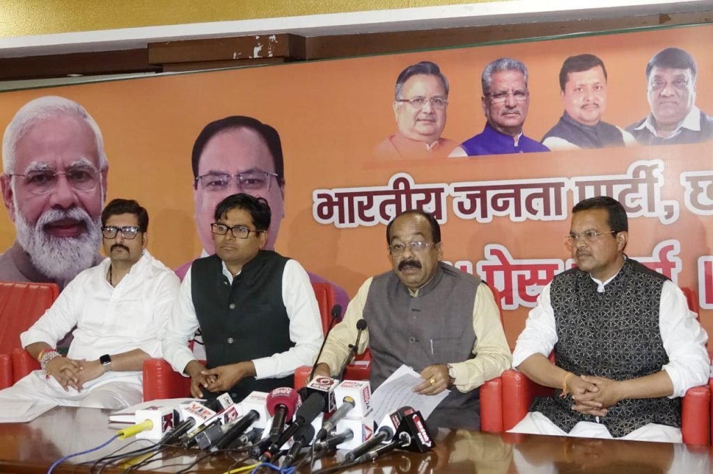 भाजपा प्रदेश अध्यक्ष अरुण साव ने प्रेस वार्ता को संबोधित करते हुए कहा