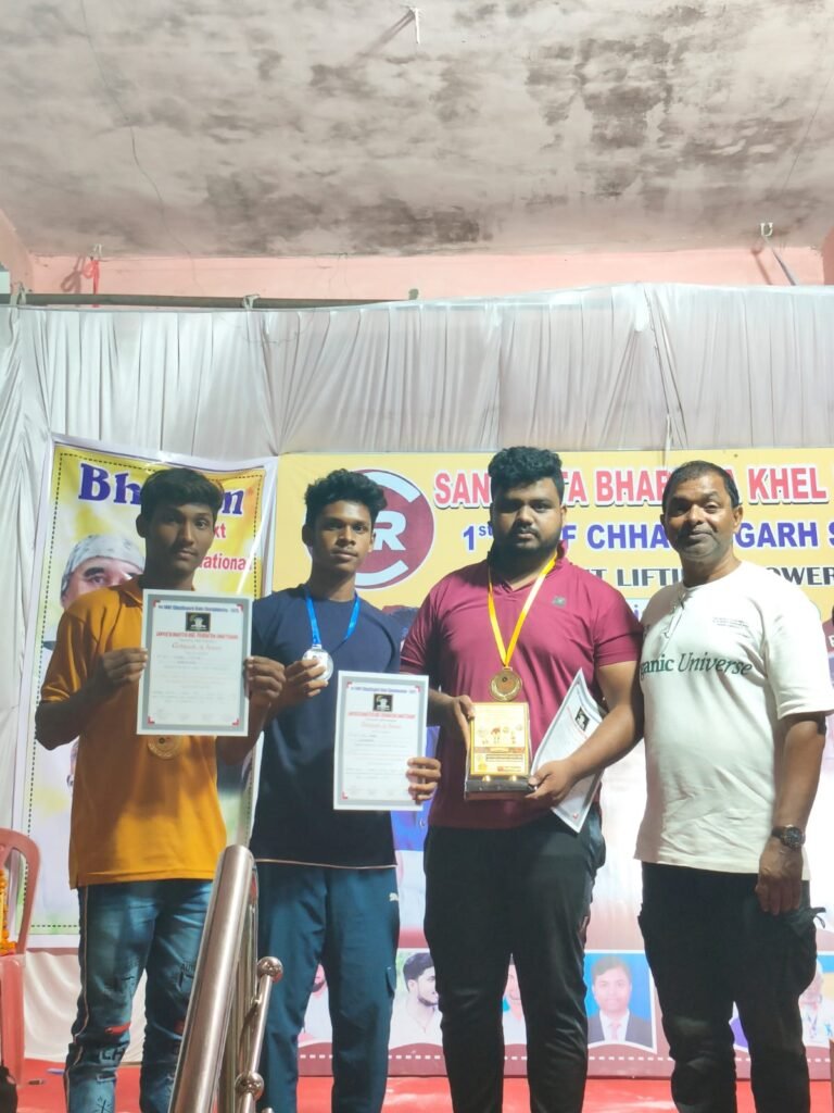 कोंडागांव – संयुक्त भारतीय खेल फाउंडेशन द्वारा आयोजित छत्तीसगढ़ स्टेट चैंपियनशिप 2025 की प्रथम राज्य स्तरीय पावरलिफ्टिंग और वेटलिफ्टिंग प्रतियोगिता में कोंडागांव जिले के दो होनहार खिलाड़ियों, फलेश कुमार और शेख बिसेन ने अपनी कम उम्र के बावजूद शानदार प्रदर्शन कर जिले का नाम रोशन किया।