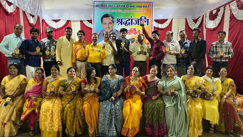 - कांकेर स्टार गोल्डन कराओके सिंगिंग ग्रुप काँकेर के द्वारा दिनांक 28 8.2025 को पुराने कम्युनिटी हॉल में मुकेश की पुण्यतिथि पर श्रद्धांजलि