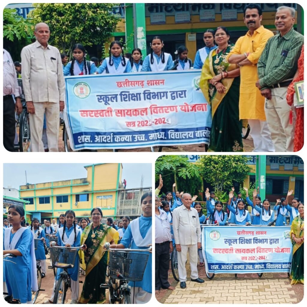 बालोद, 16 सितंबर 2025: छत्तीसगढ़ शासन की निःशुल्क साइकिल वितरण योजना के तहत शासकीय आदर्श कन्या उच्चतर माध्यमिक शाला, बालोद में कक्षा 9वीं की 62 पात्र छात्राओं को साइकिलों का वितरण किया गया। इस योजना का उद्देश्य छात्राओं की शिक्षा को प्रोत्साहन देना और स्कूल आने-जाने की सुविधा प्रदान करना है, ताकि उनकी पढ़ाई में किसी भी प्रकार की बाधा न आए।